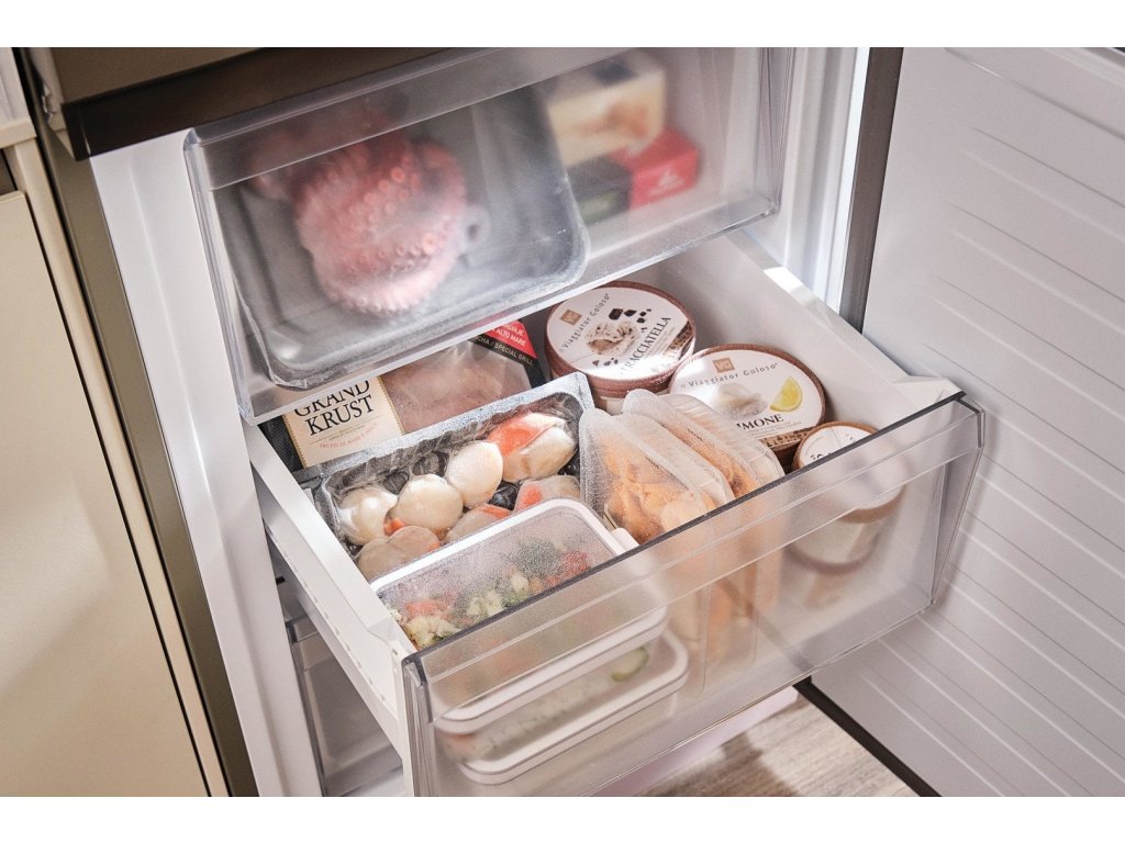 Total No Frost, dotykový displej, LED osvětlení, nulová zóna, zásuvka s 90% vlhkostí, invertorový kompresor