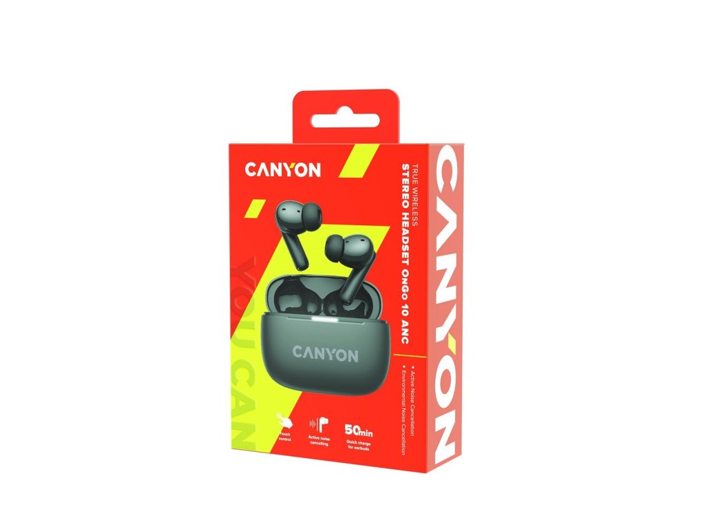 OnGo 10 ANC Už jste vyzkoušeli bezdrátová sluchátka? Je možné, že se sluchátky Canyon OnGo 10 se už nebudete ohlížet zpět. Díky energeticky úspornému rozhraní Bluetooth 5.3 nabízejí dlouhou dobu přehrávání a stabilní připojení k zařízení, i když jste pár metrů od zařízení. Perfektní pro poslech hudby i hovory díky čtyřem mikrofonům: aktivní potlačení šumu zajistí, že uslyšíte, co chcete slyšet. Kromě toho se automaticky aktivuje při hovoru. Sluchátka OnGo 10 se ovládají dotykem a mají hlasového asistenta, který vás informuje o stavu sluchátek. Pouzdro podporuje technologii rychlého nabíjení. Sluchátka můžete plně nabít za pouhých 50 minut (Quick charge). Tato elegantní a ergonomická sluchátka TWS vypadají skvěle v jakékoli barvě: černé, tmavě modré nebo béžové. Přidali jsme gumičky ve třech velikostech, aby vám ideálně padly. - Energeticky úsporné rozhraní Bluetooth 5.3 - Automatické párování - Aktivní potlačení šumu - Potlačení okolního hluku - Čtyři mikrofony - Stereofonní zvuk při telefonních hovorech - Rychlé nabíjení - Hlasový asistent - Gumičky ve 3 velikostech - Ochrana IPX5 Režim zvukového výstupu Stereo Frekvenční odezva 20Hz-20kHz Součásti systému 2 reproduktory Tvarový faktor mikrofonu Vestavěné Délka kabelu 0.24 m Kabel je součástí balení USB-C Charge Cable Bezdrátová technologie Bluetooth 5.3 Šiřka 63.97 mm Výška 47.47 mm Hloubka 26.5 mm Střední váha 42.5g Doba přhrávání (sluchátka) 6.5h bez ANC / 5.5h s ANC Doba přhrávání (nabíjecí pouzdro) 30h bez ANC / 26h s ANC Kapacita baterie (sluchátka) 40mAh Kapacita baterie (nabíjecí pouzdro) 500mAh Doba nabíjení (sluchátka) 50min (QC) Doba nabíjení (nabíjecí poudro) 2h Herní mód Ano ENC 4-mic ANC Ano (-28dB) Transparency mode Ano Indikátor nabíjení (pouzdro) Ano Port Type-CDodatočné parametre