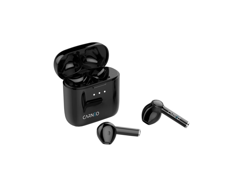 Slúchadlá Bluetooth CARNEO S8 čierne. CARNEO S8 sú vždy v skvelej kondícii vďaka ich okamžitej nastaviteľnosti. Stačí ich vytiahnuť z doku, zapnúť, spárovať s telefónom a zábava sa môže začať. Vďaka akustickému systému s dvoma budičmi vám sluchátka poskytnú naozaj kvalitný, čistý, autentický a dynamický zvuk s jasnými výškami a pevne zasadenými basmi. Kľúčové vlastnosti Bezdrôtové sluchátka Bluetooth Hands-free prijímanie telefónnych hovorov 500 mAh nabíjacie pouzdro na dobíjanie sluchátek Prémiový zvuk Jednoduché a rýchle párovanie Ovládacie tlačidlá priamo na sluchátkach Technické špecifikácie Farba: čierna Frekvenčný rozsah: 20 - 20 00 96 dB Rozsah: Až do 10 m Bluetooth: 5.0 Doba prehrávania hudby: Max. 4 hod. 3 hod. Čas nabíjania: Približne 2 hod. Pohotovostný čas: 100 hod. Protokoly: 1: HSP/HPF/A2DP/AVRCPDodatočné parametre