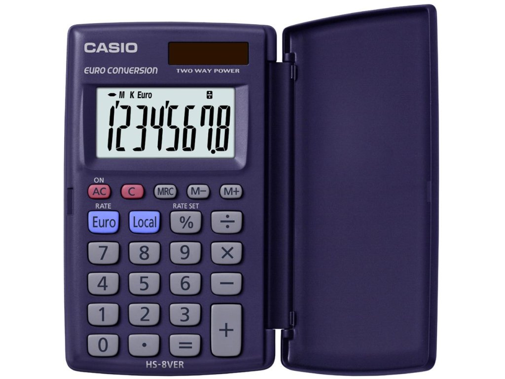 Jasný 8-miestny displej Prevod na menu euro Výpočet percent Nezávislá pamäť Indikácia poradia; 3-miestne čárky Pevné plastové puzdro Napájanie: duálne solárne/batériové Rozmery: 10 x 62,5 x 104 mm - v zatvorenom stave 7,5 x 127 x 104 mm - otvorené Hmotnosť: 45 g EAN 4971850172628Dodatočné parametre