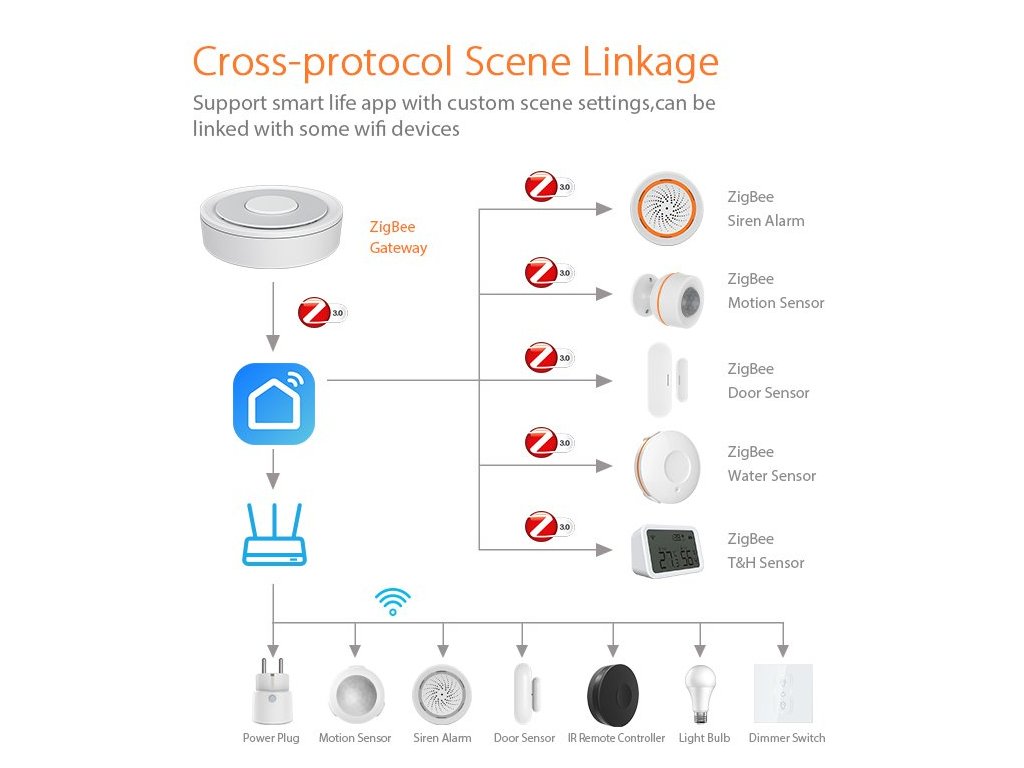 Inteligentná centrálna jednotka CEL-TEC E90-C ZigBee/LAN - Apple Homekit/Tuya S centrálnou jednotkou ZigBee môžete rýchlo rozšíriť svoj systém domácej automatizácie o bezdrátové produkty, ako sú snímače zaplavenia, snímače teploty, snímače otvorenia, snímače pohybu alebo hlavice termostatu. Síť MESH - ZigBee samozrejme zahŕňa aj zariadenia napájané 230 V (zásuvky, vypínače, žiarovky), ktoré sa zároveň stávajú zosilňovačmi signálu pre ostatné zariadenia napájané z baterií! Týmto spôsobom môžete vytvoriť dokonale veľkú sieť mesh. CEL-TEC E90-C je inteligentná riadiaca jednotka pre vašu domácnosť, ktorá dokáže súčasne pripojiť až 128 zariadení. -Flexibilné - podpora pre Tuya aj Apple Homekit (nie súčasne). -Natívna podpora Apple Homekit znamená jednoduchý spôsob, ako dostať zariadenia ZigBee do vášho iPhonu, pridanie mostíka sa vykonáva naskenovaním QR kódu v aplikácii Home. -Jednoduché párovanie podriadených zariadení ZigBee stlačením tlačidla (Apple) alebo aplikácie (Tuya). -Pod Homekit v kombinácii s HUB (Apple Homepod, Apple TV) nepotrebuje internetové pripojenie. -Podporuje až 128 zariadení bez zaťaženia siete Wi-Fi, nízka spotreba energie. -Štýlové kruhové LED indikácie. -Pripojenie cez sieť LAN - spoľahlivejšie ako bezdrátové pripojenie Wi-Fi. -Pevne napájané zariadenia ZigBee môžu rozšíriť dosah siete. Podpora Apple HomeKit: Toto zariadenie je certifikované na používanie so systémom Apple HomeKit. Brána nepodporuje súčasné používanie Apple HomeKit a Tuya, musíte si vybrať jeden systém. Pre optimálnu funkciu by mal byť Apple HomeKit rozšírený o domáci rozbočovač pre prístup mimo miestnej siete. Túto funkciu podporuje napríklad Apple TV alebo Apple Homepod. Od systému IOS 16 nie je možné v novej architektúre používať Ipad ako rozbočovač. TUYA ZigBee Universal Gateway Centrálna jednotka CEL-TEC E90-C sa vyznačuje vysokou kompatibilitou s mnohými zariadeniami ZigBee od rôznych výrobcov. Nie je to zariadenie určené na spoluprácu len s konkrétnou produktovou radou jednej značky. CEL-TEC E90-C je tiež vybavená konektorom LAN (RJ-45) na káblové pripojenie k internetu. Protokol ZigBee - sieť Mesh ZigBee je systém založený na bezpečnom protokole, ktorý okrem iného umožňuje bezdrôtový prevádzku domácich spotrebičov napájaných z batérie s dlhým časom prevádzky. ZigBee sa od klasickej siete WiFi líši najmä dostatočne dlhou výdržou batérie (čo pri klasickom protokole WiFi nie je možné). Okrem toho sa vybrané zariadenia ZigBee (napájané 230 V) stávajú súčasťou siete Mesh. To znamená, že ak sa modul nemôže pripojiť priamo k bráne ZigBee, komunikuje s ňou prostredníctvom iného najbližšieho príslušenstva tohto systému. Opakovače v ekosystéme ZigBee sú zariadenia napájané 230 V. To umožňuje vytvoriť rozsáhlú sieť, ktorá môže fungovať na oveľa väčšie vzdialenosti ako tradičná sieť WiFi. Rozšírte možnosti svojej inteligentnej domácnosti Vďaka svojim výhodám si ZigBee rýchlo získava nových používateľov. Existuje stále viac nových kompatibilných systémových komponentov, ktorých spoločným rysom je spoľahlivosť a malé rozmery, ktoré umožňujú zanedbateľnú spotrebu energie, a teda nie je potrebné používať veľké batérie. Zariadenia ZigBee sa oplatí používať tam, kde je nevyhnutná spoľahlivosť automatizovaných procesov. Keďže automatizáciu riadi centrálna jednotka (brána), naprogramované pravidlá sa budú realizovať bez ohledu na prístup k WiFi alebo v prípade absencie internetového pripojenia. Parametre Napájanie: 5V 1A MicroUSB Spotreba energie v pohotovostnom režime: 0,5 W Frekvencia Zigbee: 2,4 GHz Komunikační štandard: Zigbee IEEE 802.15.4 Protokol: ZigBee 3.0 Maximálny vysielací výkon: 19 dBm RJ45 zariadenia: 128 Prevádzková teplota: 0 °C ~ 55 ° C Prevádzková a skladovacia vlhkosť: 10 % ~ 90 % Teplota skladovania: -10 ° C ~ 60 ° C Rozmery: 78 x 78 x 25 mmDodatočné parametre