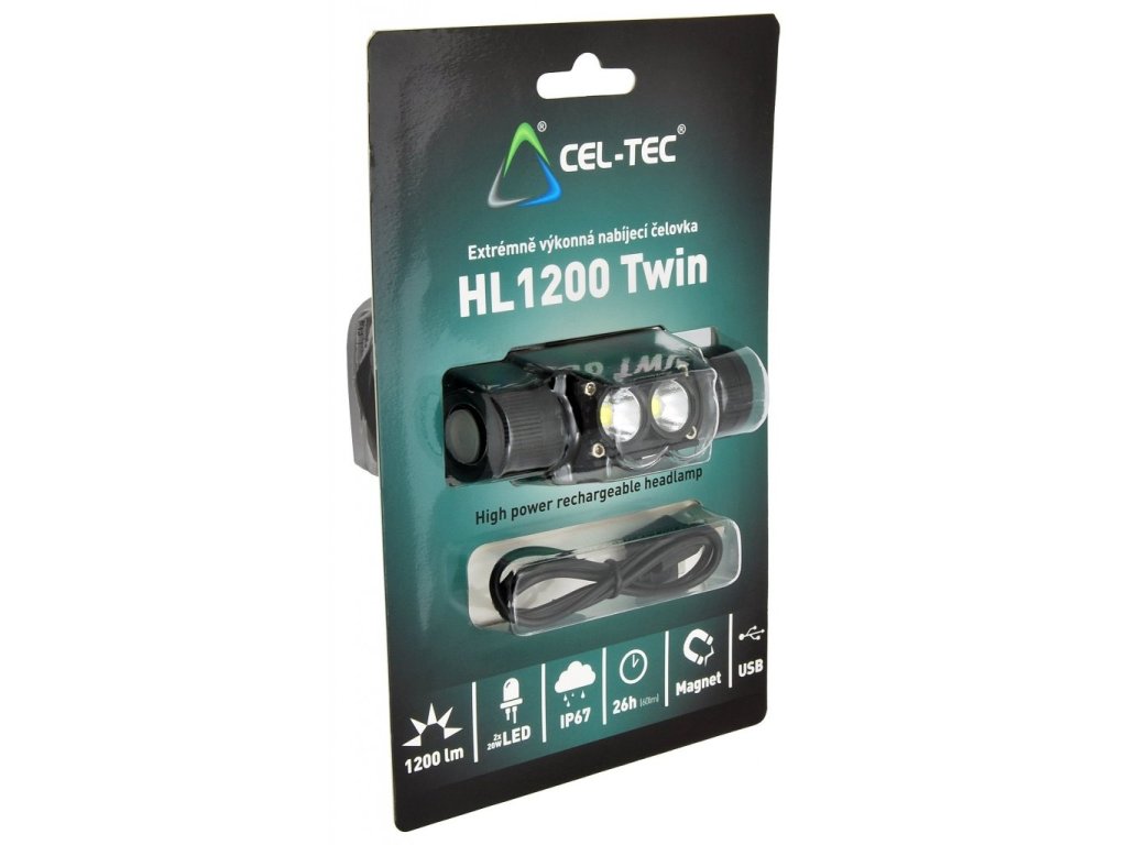 CEL-TEC HL1200 Twin je vysoko výkonná dobíjacia čelová baterka, ktorá je vďaka svojmu dizajnu a funkciám veľmi všestranná a vhodná napr. na domáce práce, opravy, kempovanie, turistiku, venčenie psov, rybárčenie, remeselné práce atď. Extrémny výkon až 1200 lm Pre žiadny čelovku Svietidlo je vybavené dvoma kvalitnými 20W LED diódami, ktoré produkujú pôsobivý výkon až 1200 lm! Samozrejme, intenzitu svetla možno jednoducho a plynulo regulovať pomocou jediného tlačidla podľa aktuálnej potreby, a to až na hodnotu 60 lm. Nižší výkon oceníte najmä pri osvetlovaní na krátke vzdialenosti, kde by inak mohlo dochádzať k nežiaducemu oslneniu. Odolný dizajn a konštrukcia Pevná konštrukcia z odolného hliníka a vysoká ochrana proti vode by mali byť samozrejmosťou pre všestranného pracovného koňa, ktorým HL1200 Twin bezpochyby je. Preto je svítidlo vyrobené vo vysokom stupni krytia IP67, ktorý ho plne chráni pred vniknutím nielen prachu, ale aj vody, a to aj v prípade neúmyselného ponorenia (max. 30 minút do hĺbky 1 metra). Pevná kovová konštrukcia nemusí nutne znamenať vyššiu hmotnosť. Čelovka váži 158 g (s bateriou), čo nie je hmotnosť, ktorá by vás pri práci alebo vašich aktivitách nejako obmedzovala, a to vďaka kvalitnému trojbodovému popruhu na hlavu, popruh je vybavený aj reflexnými prvkami. Konštrukcia je nielen odolná, ale aj praktická - jedna strana čelovky je vybavená magnetom na jednoduché umiestnenie na kovové povrchy. Jednoduché nabíjanie a vymeniteľná batéria Napájanie čelovky CEL-TEC HL1200 Twin zabezpečuje komerčne dostupná nabíjateľná lithium-iónová batéria 18650 s kapacitou 2600 mAh. Tú možno nabíjať priamo v tele čelovky pomocou konektora microUSB alebo ju možno jednoducho vybrať a vložiť napríklad do externej nabíjačky. Stav nabitia sa zobrazuje pomocou kontrolky LED ukrytej pod hlavným vypínačom pri každom zapnutí svítidla. Režim svietenia - Svetelný výkon - Pracovný čas 100 % - 1200 lm - 2,5 h 50 % - 600 lm - 3 h 20 % - 240 lm - 4,2 h 10 % - 120 lm - 17 h 5 % - 60 lm - 26 h 1x USB nabíjací kábel 1x 18650 Li-ion batéria Užívateľská príručka SK/EN Parametre LED čip: 2x XHP50 Svetelný tok: max. 1200 lm (2,5 h) / min. 60 lm (26 h) Výkon čipu: 2x 20 W Ochrana: IP X7 Počet svetelných režimov: 5 Batérie: 18650 Li-ion batéria / 3,7 V / 2600 mAh Čas nabíjania: cca 4 h Materiál tela: eloxovaný hliník Magnet: Áno LED indikácia čelovky: 217 g / 155 g Rozmery balenia: 13,5 x 9 x 21 cmDodatočné parametre