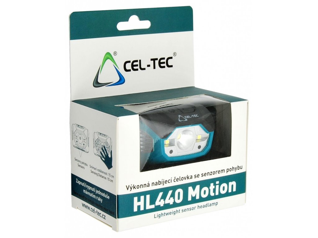 Nabíjateľná čelovka CEL-TEC HL 440 Motion so senzorom pohybu na jednoduché zapnutie/vypnutie mávnutím ruky. Čelovka je vybavená tromi výkonnými LED diódami - 1x hlavnou LED diódou (CREE XPG-3) pre bodové svetlo a 2x bočnými LED diódami pre rozptýlené svetlo. Maximálny svetelný výkon je 440 lm. Čelovka má 5 režimov svietenia a možno ju kombinovať pre bodové a rozptýlené svetlo. Čelovka má samozrejme nastaviteľný sklon. CEL-TEC HL 440 Motion je moderná, ľahká, kompaktná, odolná a ľahko použiteľná čelovka, ktorá najde uplatnenie pri mnohých činnostiach, ako je beh, kempovanie, turistika, lov, remeselnícke práce, domáce práce atď. Vstavaná batéria sa nabíja pomocou štandardného konektora USB-C (kábel je súčasťou balenia) a úroveň je súčasťou balenia. Režimy Stredný (bodový): výkon 100 lm, trvanie 8 h, dosah 55 m Vysoký (bodový): výkon 330 lm, trvanie 3,7 h, dosah 99 m Extrémne jasný (bodový + rozptýlený): výkon 440 lm, trvanie 2,5 h, dosah 1 120 lm, trvanie 7,7 h, dosah 10 m Slabý (difúzny): výkon 10 lm, trvanie 70 h, dosah 5 m Ovládanie režimu svetla: stlačením zapnete zariadenie - hlavná (bodová) LED sa rozsvieti na strednej úrovni jasu; ďalšími stlačeniami do 3 s od zapnutia sa prepínajú úrovne jasu: Stredná (bodová) ' Vysoká (bodová) ' Extrémne jasná (bodová LED + rozptylová LED) ' Vysoká (rozptylová LED) ' Nízka (rozptylová LED) ' Vypnutá. Stlačením prepínača režimu svietenia 3 sekundy po poslednom úkone v ktoromkoľvek režime sa svetlomet vypne. Ovládanie pomocou snímača pohybu: Keď je čelovka zapnutá, stlačením tlačidla snímača pohybu prejdete do režimu snímača (kontrolka LED bude blikať 2 s). Potom možno čelovku zapnúť/vypnúť jednoduchým mávnutím ruky. Optimálna vzdialenosť ruky je 7 cm – 15 cm pred čelovkou. V tomto režime je možné meniť aj režimy svietenia. Parametre Hlavná LED: CREE XPG-3 Svetelný výkon: až 440 lm Farba svetla: CREE 6500K Batérie: 3,7 V, 1800 mAh Čas nabíjania: 2,3 h Vstup USB: 5 V - 1000 mA MAX Rozmery: 60 mm × 4 mm vodotesnosti: IPX6 Odolnosť proti nárazu: 2 m Rozsah detekcie pohybu: 15 cm Balenie: 173 g / 11,5 × 8 × 6,5 cm Počet LED diód: 3 LED indikácia stavu batérie: Áno Ovládanie detekcie pohybu - mávnutie rúk: Áno Nabíjací konektor: USB-CDodatočné parametre