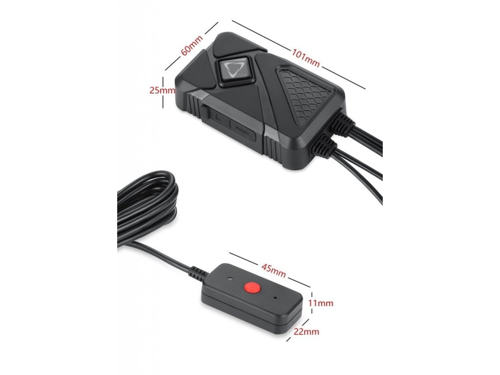 Popis produktu: Kamera CEL-TEC MK02 Dual Wi-Fi GPS je primárne určená pre motocykle, ale rovnako dobre sa dá použiť aj v aute (s predĺžením kábla zadnej kamery). Vďaka podpore až 256 GB kariet microSD nie je problém uložiť desiatky hodín záznamu vo FULL HD rozlišení. Modul GPS zaznamenáva údaje o trase a rýchlosti a WiFi umožňuje rýchle nastavenie, zobrazenie a stiahnutie záznamu do telefónu. Súčasťou balenia je aj diaľkové ovládanie na kábli s mikrofónom a indikačnou LED diódou na rýchle a jednoduché fotografovanie. Kamery sú, samozrejme, vodotesné. Duálne nahrávanie v rozlišení FULL HD Zariadenie CEL-TEC MK02 DUAL Wi-Fi GPS je vybavené dvojicou kamer FULL HD, ktoré počas jazdy monitorujú situáciu pred aj za bicyklom. Záznamy sa ukladajú a spracúvajú v záznamovej jednotke, ktorú možno ľahko ukryť v útrobách motocykla, na kartu microSD s veľkosťou až 256 GB. Samozrejmosťou je možnosť nahrávania v zlúčke (po zaplnení karty sa prepíšu najstaršie nahrané záznamy) a g-senzor, ktorý reaguje na náhly pohyb kamery (napr. náraz). Ak senzor takýto pohyb zaznamená, uzamkne aktuálne záznam proti prepísaniu, takže situácia zostane uložená na karte microSD a vy môžete pokračovať v prejazde. Odolná a praktická konštrukcia Samozrejme, je jasné, že jazda na motorke nie je len o jazde po krásnych cestách za slnečného počasia. Preto sú kamery vyrobené s krytím IP67, čo predstavuje úplnú ochranu proti vniknutiu prachu a ponoreniu do vody. Hlavná jednotka má potom stupeň krytia IP65, ktorý ju chráni pred krátkodobým dešťom. Jednoduché a bezpečné ovládanie na cestách zabezpečuje diaľkové ovládanie, ktoré možno použiť aj na okamžité zhotovenie fotografie počas prebiehajúceho záznamu. Diaľkové ovládanie je vybavené aj mikrofónom a kontrolkou LED, ktorá informuje o stave nahrávania. Okamžité sdílenie záznamov a dokonalý prehľad o trase - modul WiFi a GPS Kamera na motocykel CEL-TEC MK02 Dual Wi-Fi GPS má zabudovaný modul WiFi na pripojenie k mobilnému telefónu, z ktorého je možné vďaka jednoduchej aplikácii stiahnuť nahrané záznamy a prípadne ich okamžite sdielať na sociálnych sieťach. Aplikácia umožňuje aj rýchle nastavenie kamery a ovládanie záznamu (spustenie/zastavenie záznamu, zhotovenie fotografie). K zariadeniu je možné pripojiť aj GPS modul (je súčasťou dodávky), vďaka ktorému sa do záznamu ukladajú informácie o polohe a rýchlosti. V špeciálnem prehrávači je potom možné prehrať záznam vrátane trasy v mapách Google, údajov o rýchlosti a preťažení (nárazoch) z G-senzora. Podpora až 256 GB microSD Do záznamovej jednotky možno vložiť kartu microSD s kapacitou až 256 GB, na ktorú sa vmestia desiatky hodín záznamu vo FULL HD rozlišení. Ako už bolo spomenuté, je možné zapnúť nahrávanie v slučke, takže sa nemusíte obávať, či na karte zostane ešte dosť miesta. Dôležité záznamy, ktoré si chcete uchovať, môžete jednoducho zálohovať do telefónu prostredníctvom WiFi. Parametre Rozlíšenie videa: 1080P@30fps Formát videa: MP4 Dĺžka súboru: 1 / 3 / 5 / 10 min (nastaviteľná) Senzor nárazu G: Áno Rozlíšenie fotografií: 1920 x 1080 Formát fotografie: JPG Ochrana jednotky DVR: IP65 Krytie kamery: IP6 256 GB (nie je súčasťou dodávky) Modul GPS: Áno Nahrávanie v slučke: áno Materiál: TPU+ABS Nahrávanie zvuku: áno Rozmery DVR: 101 x 60 x 25 mm Hmotnosť DVR: 130 g Jazyk aplikácie: angličtina, slovenčina Snímač obrazu: SONY IMX3 140° Modul Wi-Fi: Áno Aplikácia: Android, iOS Napájanie: 12 - 24 V Pracovné napätie: 5V 2A Prevádzková teplota DVR: -30°C až +60°C Prevádzková vlhkosť DVR: 75% Dĺžka kábla DVR: 20 cm Dĺžka kábla kamier Kabel diaľkového ovládania: 250 cm Predlžovací kábel kamery: 150 cmDodatočné parametre