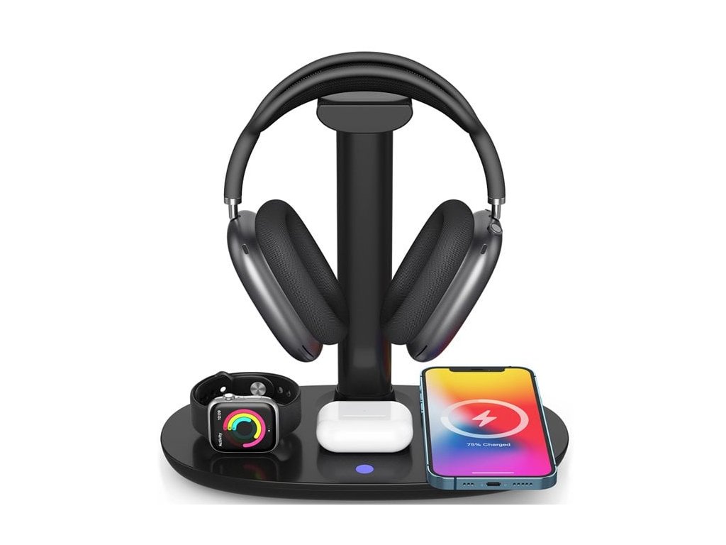 Bezdrôtová nabíjačka CEL-TEC W2 4v1 so stojanom na sluchátka je vybavená inteligentným čipom, ktorý účinne riadi nabíjanie mobilného telefónu, inteligentných hodiniek a bezdrôtových sluchátek. Nabíjanie pomocou tohto zariadenia je efektívne a spolehlivé. Stačí, ak svoje nabíjacie zariadenie štandardu Qi položíte na podložku a môžete si užívať toto jednoduché a pohodlné nabíjanie, ktoré prináša bezdrôtová technológia. Vhodné najmä pre produkty Apple: iPhone, AirPods a hodinky Apple Watch. Funkcia štyri v jednom (4v1): - Bezdrôtová nabíjačka telefónov: 5 W / 7,5 W / 10 W / 15 W max. - Bezdrôtová nabíjačka pre hodinky iWatch: 2 W max. - Bezdrôtová nabíjačka pre sluchátka: 3 W max. 4v1, ktorý šetrí miesto a úložný priestor. Vhodné na použitie v interiéri: doma, v hoteli, v kancelárii, v reštaurácii, v bare atď. Parametre Vstupné napätie/prúd: DC 9V/2A, 12V/2A Výstup bezdrôtového telefónu: 5W/7,5W/10W/15W max. Výstup bezdrôtových sluchátov: 3 2 W. Výstup USB-C: 5V/1A max. Materiál: ABS + PC nehorľavý materiál Kabel USB: 120 cm USB-C na USB-A Rozmery výrobku: 260 x 140 x 252 mm (D x Š x V) Hmotnosť: 400 Farba: čiernaDodatočné parametre