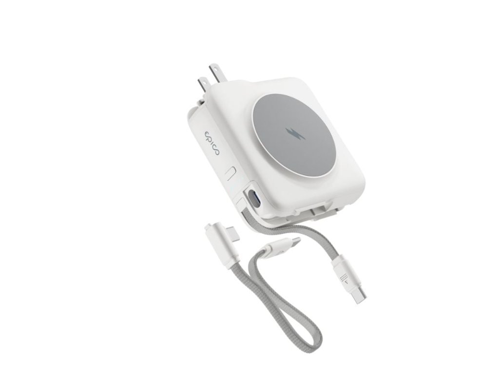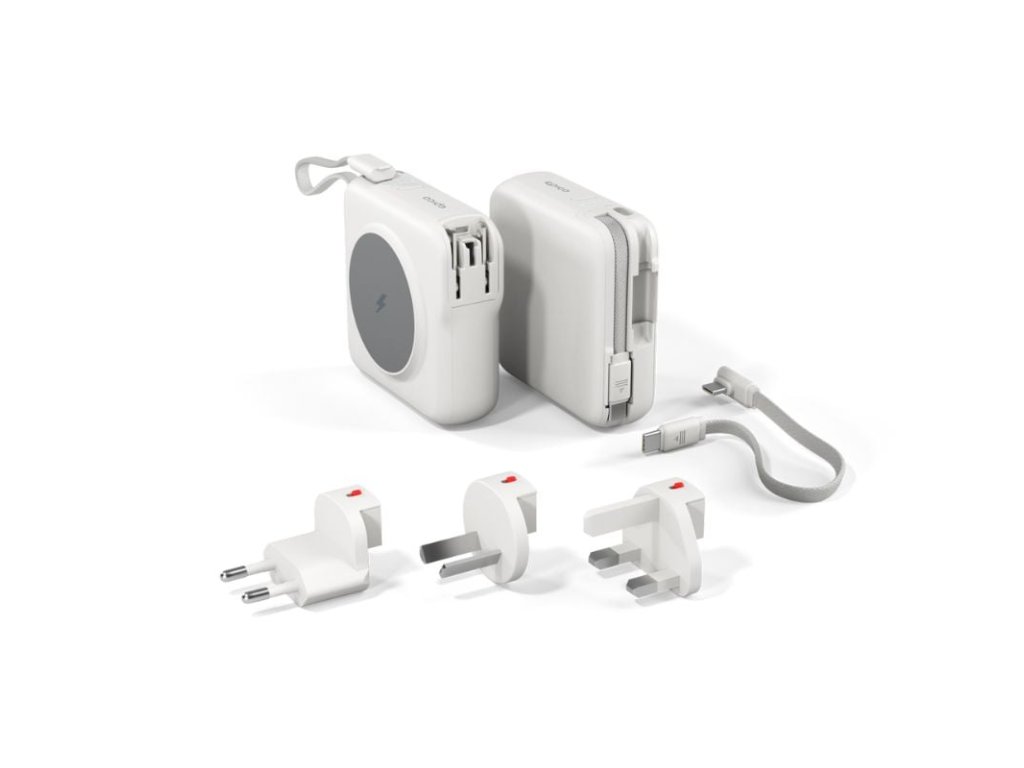 Univerzálne riešenie na cestovanie Kapacita 10 000 mAh: vysokokapacitná batéria s dostatočnou výdržou na celý deň. Konštrukcia 3 v 1. Celosvetová kompatibilita: zabudovaná americká zástrčka a priložené zástrčky EÚ, Veľkej Británie a AÚ vám umožnia nabíjať kdekoľvek na svete - bez potreby nosiť so sebou viacero nabíjačiek. 2× zabudovaný kábel USB-C: Súčasťou powerbanky sú dva opletené káble USB-C - jeden zabudovaný, druhý odnímateľný a vymeniteľný. Oba podporujú rýchle nabíjanie s výkonom až 60 W. Výstup 30 W pri zapojení do siete: Nabíja až 30 W cez port USB-C alebo kábel po zapojení do elektrickej zásuvky. Výstup 20 W na cestách: Ako powerbanka ponúka rýchle nabíjanie až do 20 W cez port USB-C alebo kábel. Kompatibilita s Qi2 a MagSafe: Pohodlné nabíjanie bez kábla - až 15 W pre kompatibilné zariadenia a 7,5 W pre iPhone. Magnetické pripevnenie zaručuje presné umiestnenie. LED indikácia.Dodatočné parametre