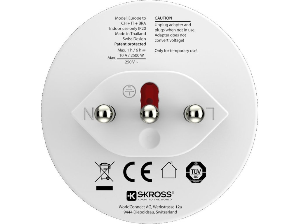 Cestovný adaptér SKROSS pre Brazíliu, Taliansko a Švajčiarsko, typ J/N/L