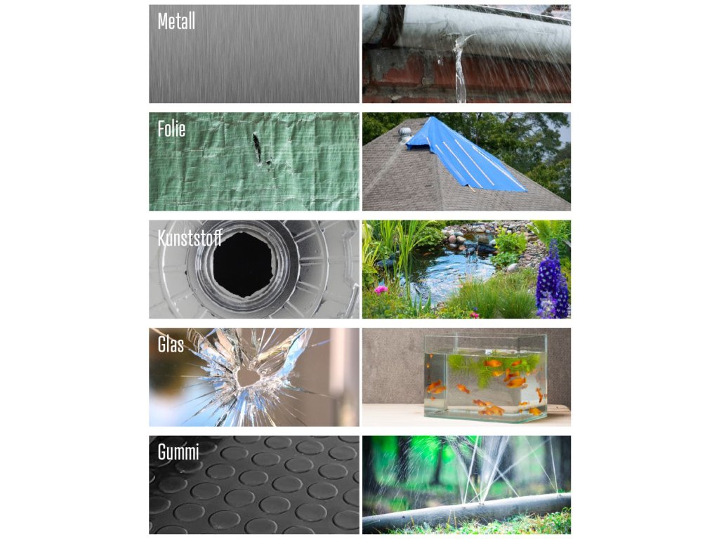 Mimoriadne pevná a vodotesná opravná páska "EasyFIX". Lepia materiály, ako sú plasty, fólie, kov, guma alebo sklo. S lepiacou páskou môžete bez problémov lepiť príslušné materiály aj pod vodou. Ľahko opravíte: malé poškodenia záhradných hadíc, striešky, obloženie jazierka, plastové obloženie jazierka, obloženie bazéna, drenážne trúbky, všetko, čo potrebujete rýchlo opraviť. Stačí vystrihnúť požadovanú veľkosť a jednoducho ju prilepiť samolepiacou páskou EasyFIX. DOPORUČANIE - lepivosť výrobku je ovlivnená teplotou vzduchu, vody a lepeného materiálu, najefektívnejšia lepivosť sa dosahuje v teplotnom rozmedzí 15-35 °C. VÝHODY: Rýchla, jednoduchá a lacná oprava netesností. Môže sa používať nad vodou aj pod vodou Dá sa strihať na míru Priľne takmer na všetky povrchy Parametre: 150 x 10 cm Farba čiernaDodatočné parametre