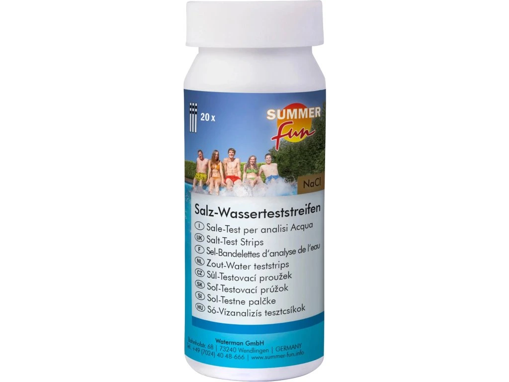Optimálny obsah soli: približne 2500 - 5500 mg/lJednoduché použitie:Jednoducho ponorte testovací prúžok do vody na 4 minúty a okamžite odčítajte namerané hodnotyAko používať:Naplňte odmernú nádobu približne 1,0 cm bazénovej vody.