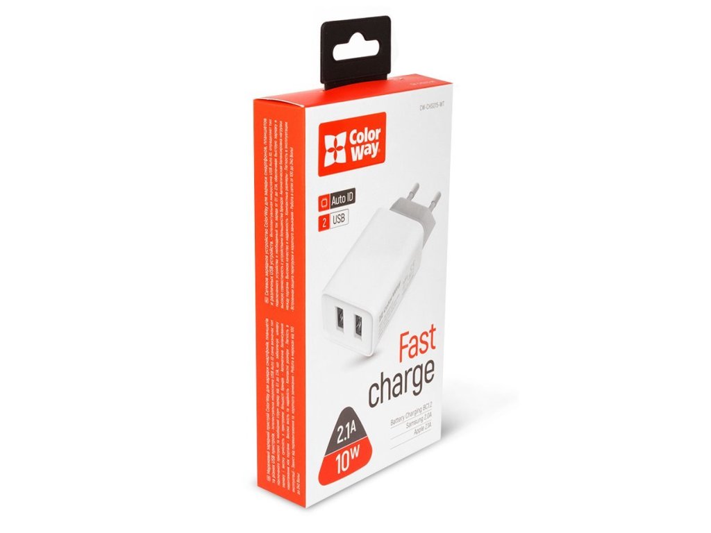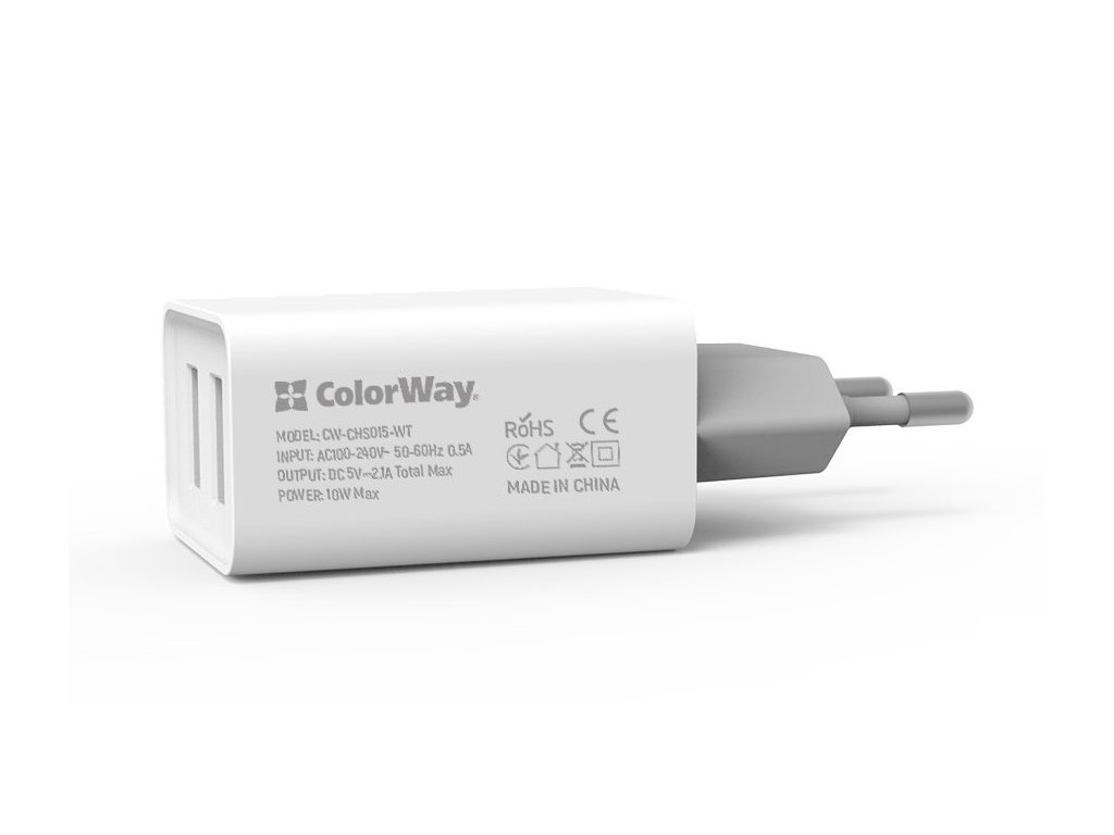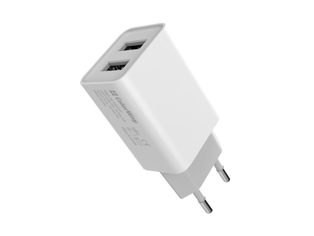 ColorWay 2x USB/ sieťová nabíjačka/ 10W/ 100V-240V/ biela