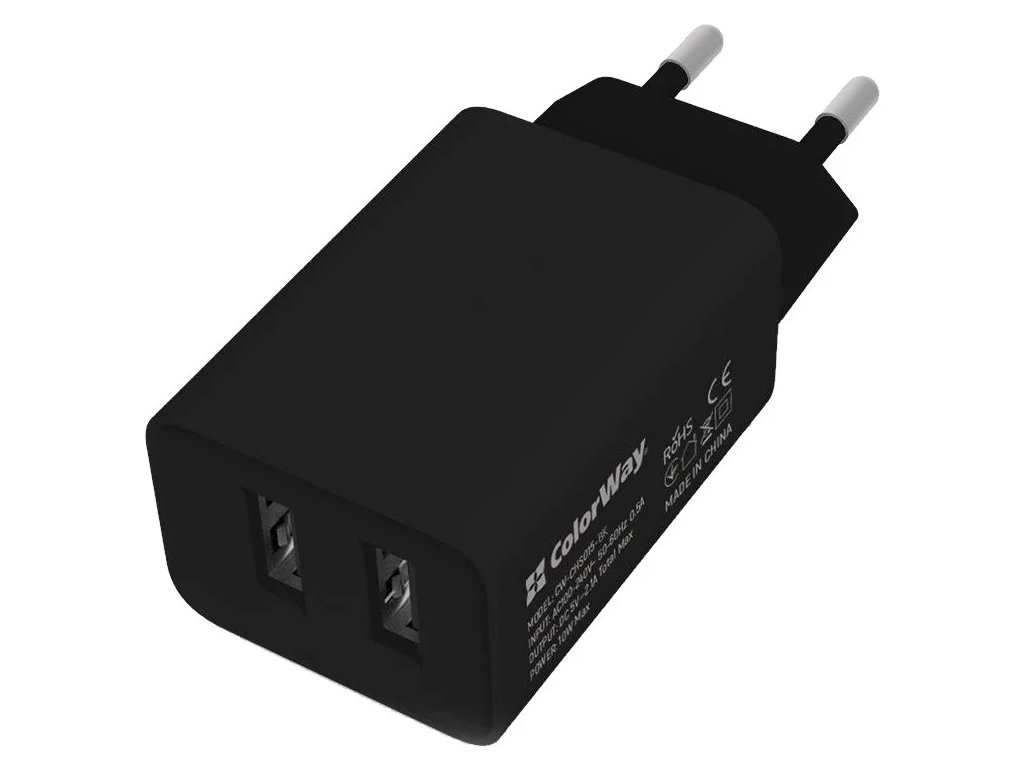 ColorWay 2x USB/ sieťová nabíjačka/ 10W/ 100V-240V/ čierna