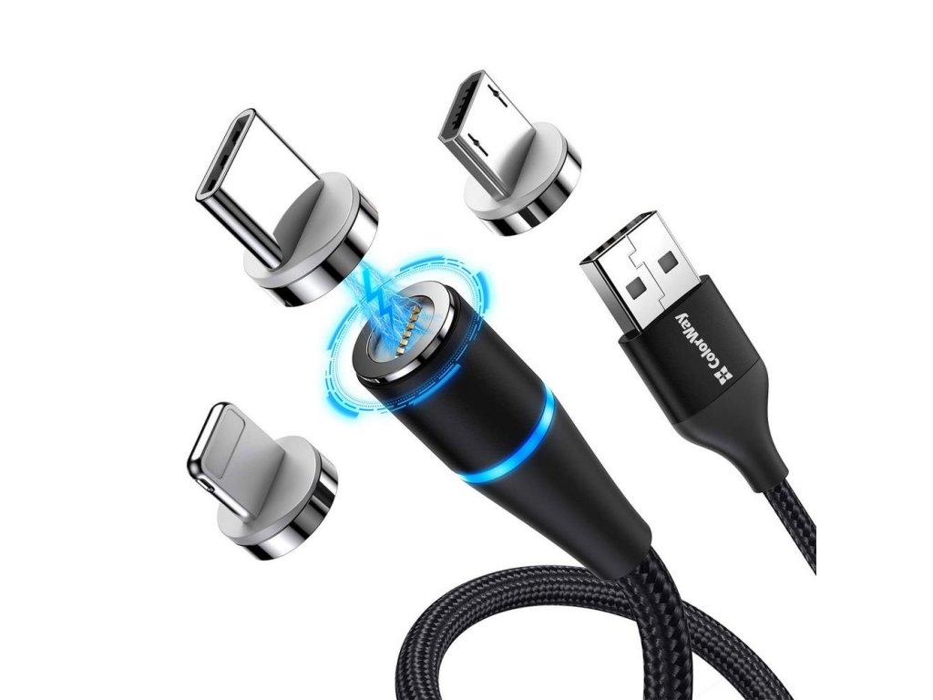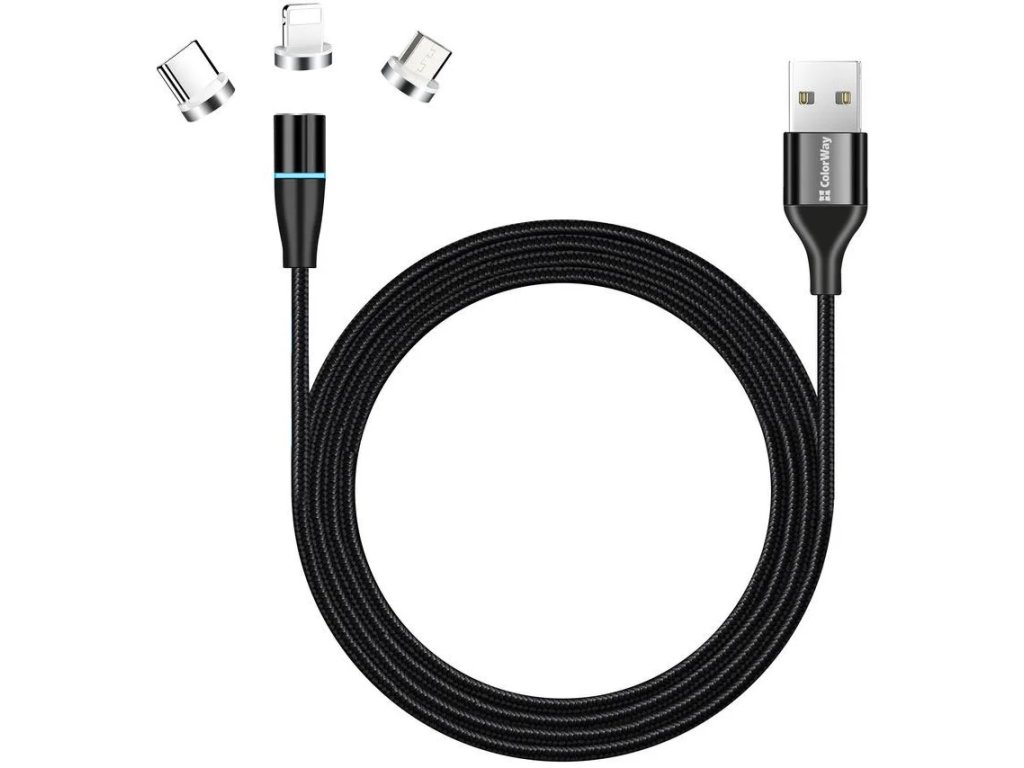 ColorWay 3v1 USB - Lightning, microUSB a USB-C kábel 1 m, QC, magnetický