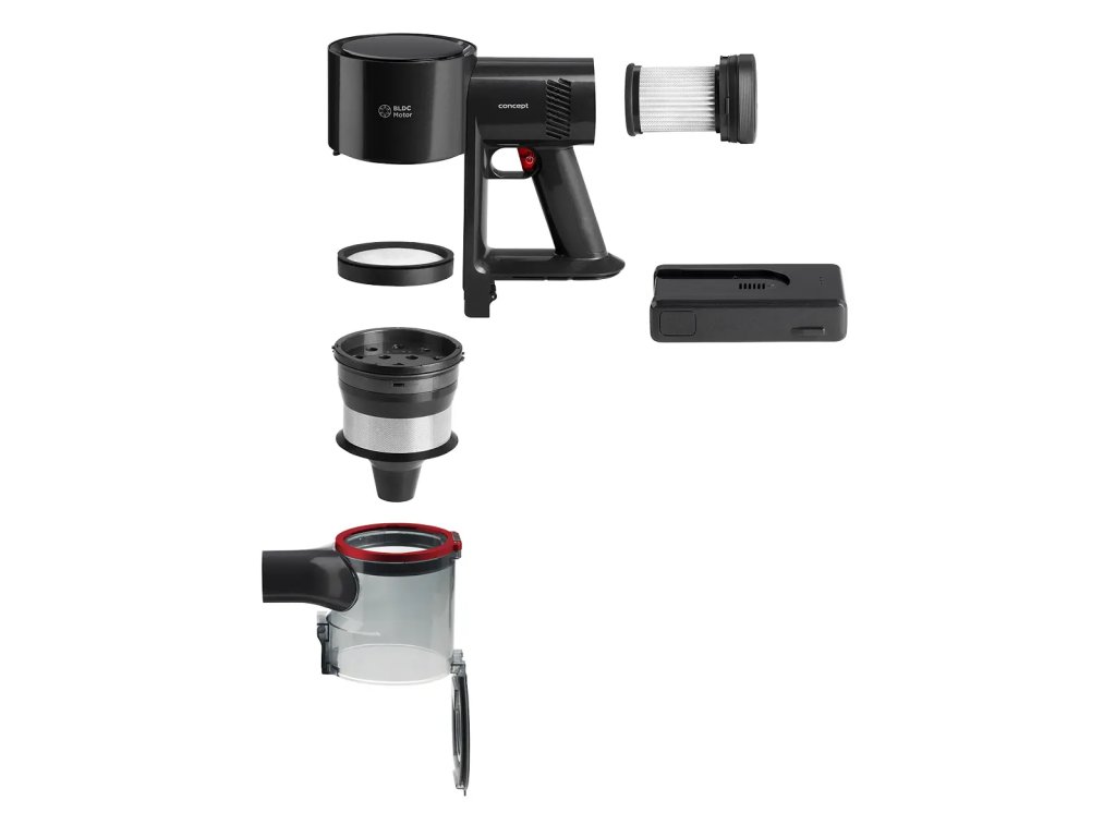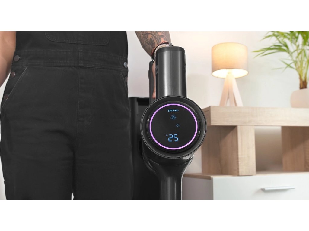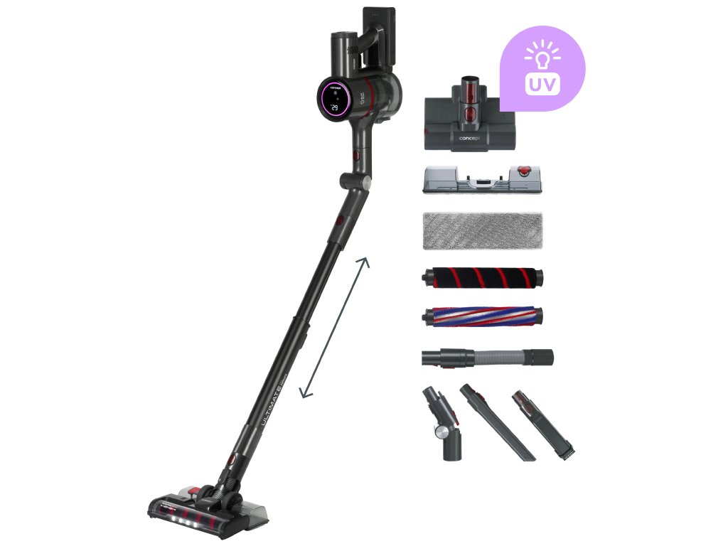 Tyčový vysávač 4 v 1 Ultimate Pro 25,9 V Concept VP6250 Multifunkčný tyčový vysávač, ktorý sa prispôsobí každému používateľovi Tyčový vysávač 4 v 1 Ultimate Pro 25,9 V Concept VP6250 je univerzálny vysávač, ktorý sa prispôsobí potrebám doslova každého používateľa. Ponúka širokú škálu príslušenstva, z ktorého si môžete zostaviť vysávač podľa svojich aktuálnych potrieb. S tyčovým vysávačom VP6250 môžete vysávať, vytierať a dezinfikovať pomocou UVC svetla. Je vhodný pre domácnosti s deťmi, domácimi zvieratami a alergikmi. Ľahko si poradí s čistením všetkých podláh, schodov, interiérov áut, ťažko prístupných miest a priestorov bez elektrickej zásuvky. Špecifikácie: 4 v 1: tyčový vysávač, ručný vysávač, mop, UVC sterilizátor. Sací výkon: 28 kPa (145 aW) Motor BLDC 3 pracovné režimy: nízky, stredný, vysoký Objem nádoby na prach: 680 ml Objem nádoby na vodu: 240 ml Odnímateľná Li-Ion batéria, 2500 mAh Napätie batérie: 25,9 V Maximálny čas vysávania: 45 minút (v režime MIN) Čas nabíjania: 4 hod. Indikátor stavu nabitia batérie (v percentách) Teleskopická trubica Veľká turbo kefa HEPA filter H13 Výkon: 500 W Hladina hluku: <80 dB Farba: čierna Vrátane príslušenstva: Flexibilný ohybný nadstavec v hornej časti vysávača = až 2x väčší dosah pod nízkym nábytkom v porovnaní s bežnými flexi trubicami UVC malá turbo kefa Kefa na tvrdé podlahy Kefa na koberce Mopovací modul Čistiaca tkanina Flexibilná flexi hadica Štrková tryska Štrková tryska s kefou Napájací adaptérDodatočné parametre