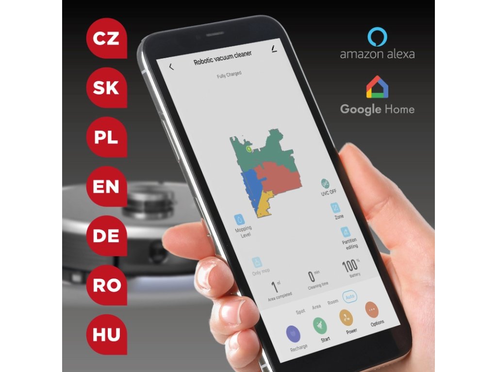 Robotický vysávač s mopom 3 v 1 Laser UVC Concept VR3520 REAL FORCE Automatické vypúšťanie nečistôt Vysáva, vytiera, sterilizuje Rozlíšenie podlahy Technické parametre: Technológia navigácie LaserTec 2.0 Prachová základňa s automatickým vysúvaním prachu 3 v 1: odsávanie prachu, odsávanie prachu, sterilizácia ROOMPLAN 3.0 - automatické rozdelenie miestností, plánovanie čistenia Motor BLDC Sací výkon 3300 Pa (3 úrovne) Li-Ion batéria 5200 mAh - až 250 minút UVC lampa - režim UVC (sterilizácia a vysávanie), režim sterilizácie (bez vysávania) Aplikácia Concept Home v ANGLICKOM JAZYKU CZ, SK, EN, DE, HU, PL Internetové pripojenie: WiFi, dátové pripojenie Kompatibilita: iOS 11.0 alebo novší Verzia firmvéru: 1.0.5 ANDROID HOVORÍ ČESKY (+ SK, EN, DE, PL, RO, HU) Ovládanie prostredníctvom domáceho asistenta Amazon Alexa/Google Home Snímač TOF CARPET turbo Upratovanie viacpodlažných domácností Celková plocha 3 režimy čistenia (úplné, zónové, lokálne) Tichý režim Elektronicky riadené čistenie Nádoba na prach 2 v 1 (kapacita nádoby na prach 300 ml / kapacita mopovacieho nadstavca 200 ml) Trojstupňová filtrácia s HEPA filtrom 13 (vhodný aj pre alergikov - zachytí až 99,9 % prachových častíc, peľu, baktérií a vírusov) Čas nabíjania 4 - 5 hodín Hlučnosť: 60 - 70 dB Dodávané príslušenstvo: Nabíjacia stanica Hlavná kefa CARPET Hlavná kefa HARDFLOOR PET hlavná kefa Nástavec na mopovanie 2x mopovacie tkaniny 6x vrecko na nečistoty (SMS3500) 6x bočná kefa 3x HEPA filter 13 + 3x penový filter Diaľkové ovládanie Čistiaca kefaDodatočné parametre