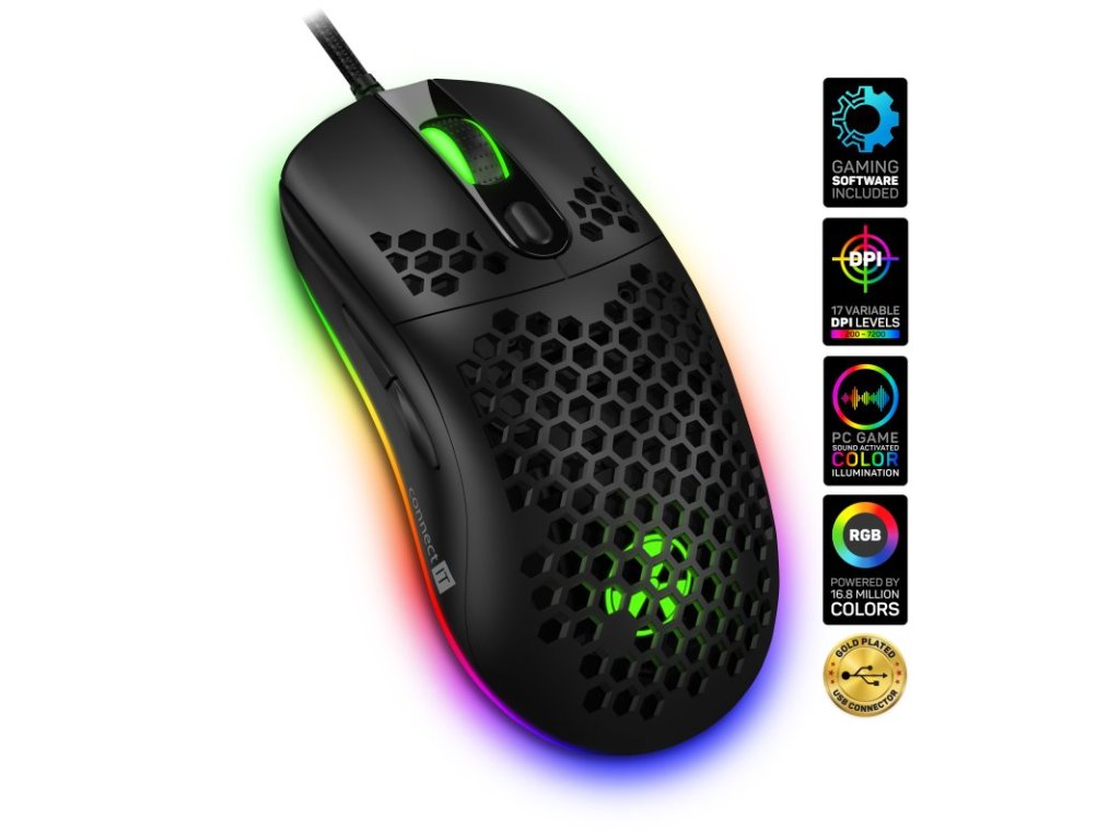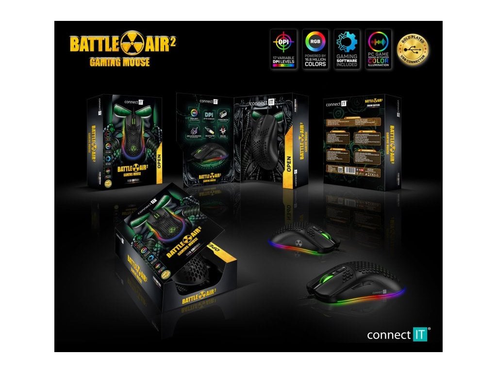 CONNECT IT Battle Air 2 profesionálna optická herná myš SW, 12800 DPI, čierna