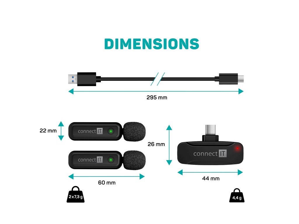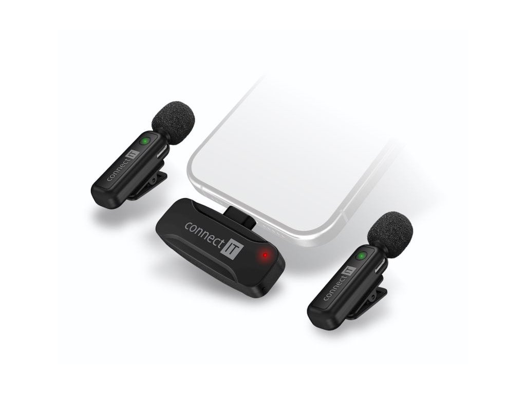 CONNECT IT Bezdrôtový lavórový mikrofón USB-C (2 ks + prijímač) sada ČIERNA
