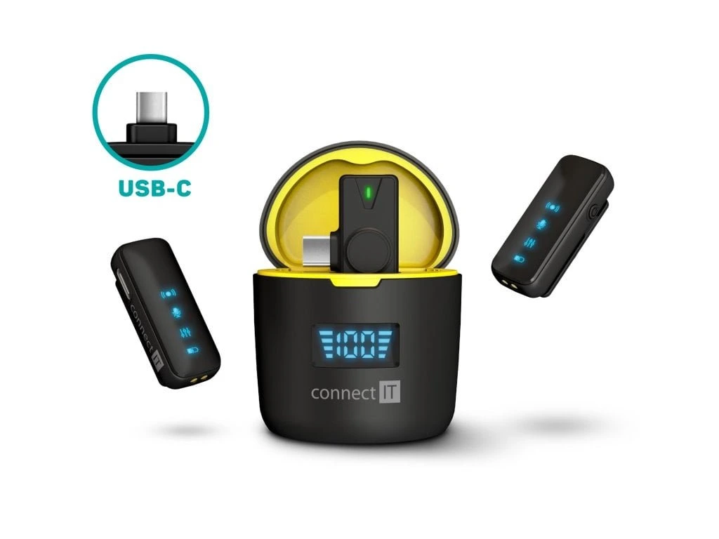 CONNECT IT Bezdrôtový mikrofón ClipMic Pro USB-C set ČIERNY