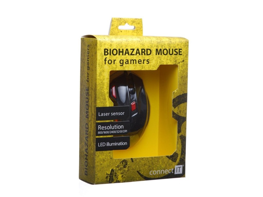 LASEROVÁ MYŠ PRE HRÁČOV BIOHAZARD - LED podsvietená myš/rolovacie koliesko - Pozlátený USB konektor - 7 tlačidiel a posuvné koliesko - Rozlíšenie: 800/1600/2400/3200 DPI - Kompatibilný s USB 1.1 a 2.0 - Mac/OS 8/OS - Hmotnosť: 110 g - Dĺžka kábla: 180 cmDodatočné parametre
