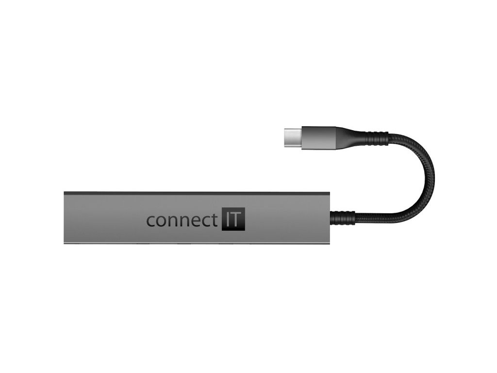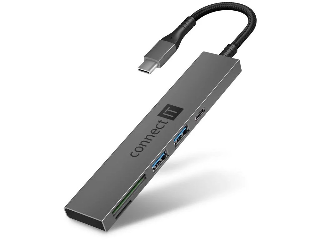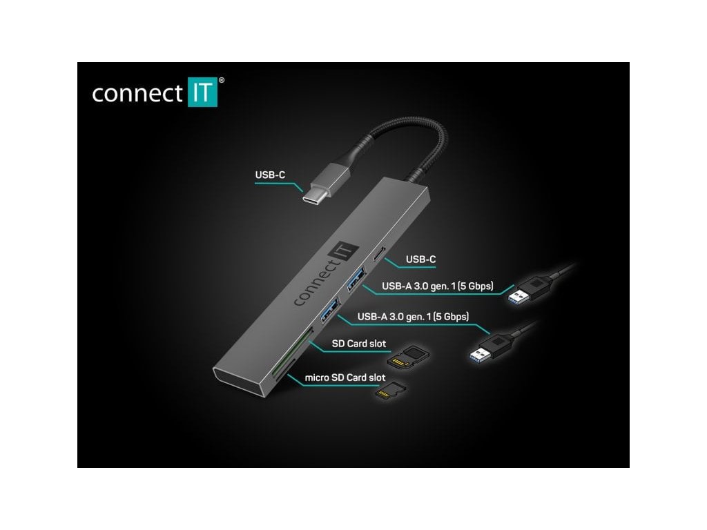 CONNECT IT CompactPRO USB-C hub + čítačka kariet, (2xUSB-A 3.0, 1xUSB-C), externý, antracitová