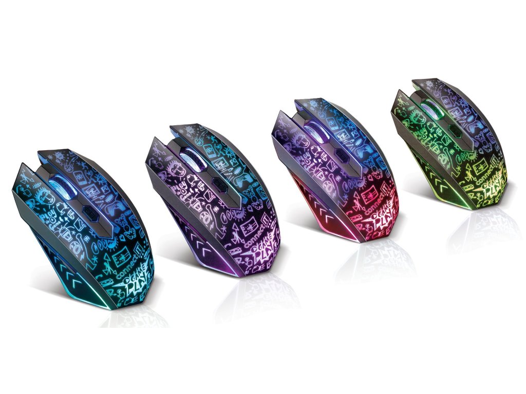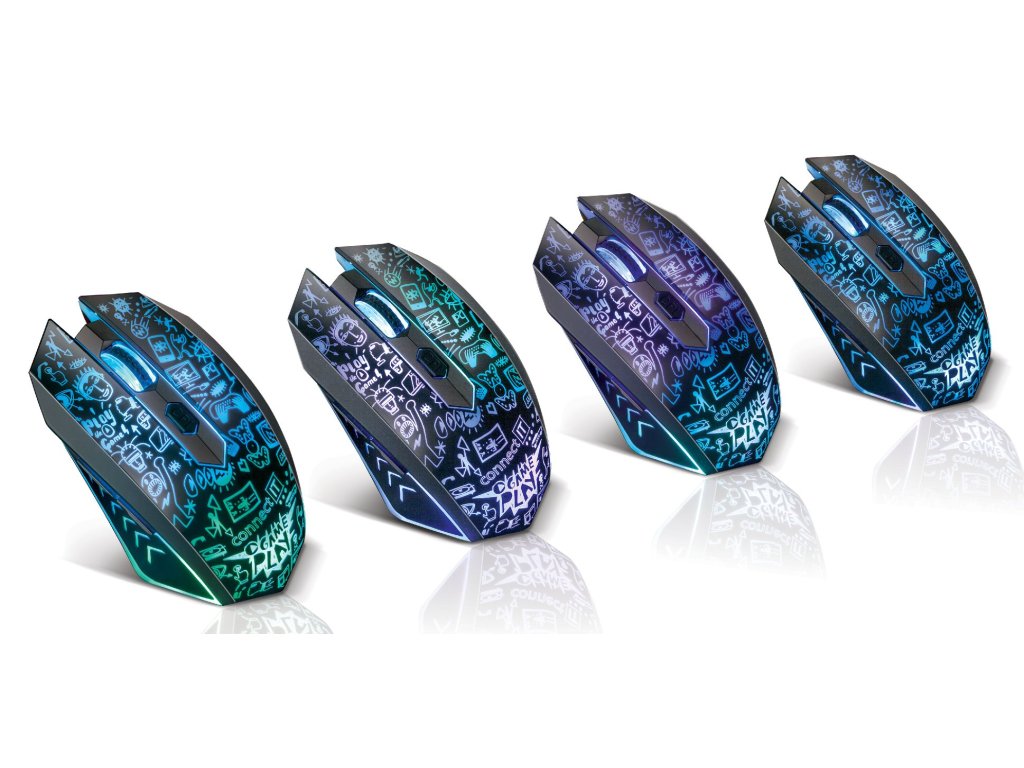 Optická bezdrôtová myš DOODLE 2 edition pre hráčov počítačových hier Vlastnosti: Myš pre hráčov alebo na kancelárske použitie Bezdrôtové a nabíjateľné riešenie Rýchle a presné snímanie pohybu Ergonomický tvar Viacfarebné podsvietenie LED 6 tlačidiel vrátane rolovacieho kolečka Technické špecifikácie: Rozlíšenie: 100 Lítiová batéria 600 mAh Prevádzkový čas až 70 hodín Čas nabíjania: 2 hodiny USB nano prijímač Prevádzkový dosah do 10 m Rozmery: 69 × 123 × 41 mm Rozhranie: USB 1.1 a vyššie Jednoduchá inštalácia Plug & Play Inštalácia počítača Prepnite tlačidlo na zariadení do polohy ON Počkajte, kým sa nainštalujú ovládače Kompatibilita: Kompatibilita so systémami Windows XP/Vista/7/8/10 a Mac OS Funkcie produktu nepodporované operačným systémom Mac OS nemusia fungovať správne.Dodatočné parametre