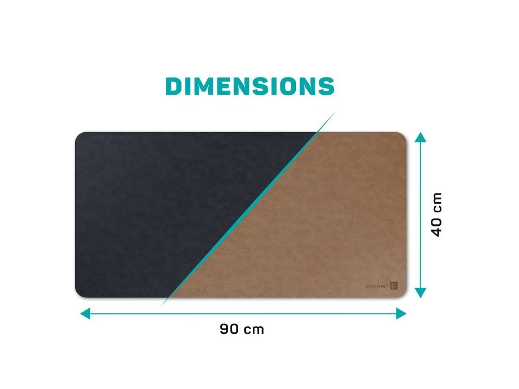 DoubleColor Pad BLUE/LIGHT BROWN --- Oboustranná stylová podložka z umělé kůže je vhodná do každé kanceláře či domácí pracovny. Podložka disponuje jemným antistatickým povrchem příjemným na dotek, zajišťující snadný a přesný pohyb myši. Při velikosti plochy 900 × 400 mm vám nikdy nedojde prostor k pohybu. Velkou výhodou je oboustranné dvoubarevné využití. Materiál byl navržen tak, aby odpuzoval vodu a nečistoty. --- Na kvalitní a stylové podložce CONNECT IT se projeví pozitivní vlastnosti vaší myši. Materiál umělé kůže, ze kterého je podložka vyrobena, poskytuje myši dobře snímatelný podklad i pro nejjemnější laserové snímání. Materiál se výraznou měrou zaslouží o ideální poměr mezi kontrolou nad myší a skluzem. --- Materiál z umělé kůže umožňující srolování podložky a její snadný transport Slim design (výška pouze 2 mm) Vhodná pro všechny typy myší (laserové, optické i mechanické) Oboustranně barevný provedení modrá / světle hnědá Vysoká přesnost povrchu ideální také pro práci v grafických editorech Povrch z jemné umělé kůže s velmi dobře snímatelnou strukturou pro nejjemnější práci senzorů myší Antistatická povrchová úprava Povrch odpuzující vodu a nečistoty Materiál: umělá kůže Rozměry (d × h × v): 900 × 400 × 2 mm Hmotnost: 410 g --- Obsah balení: PodložkaDodatočné parametre