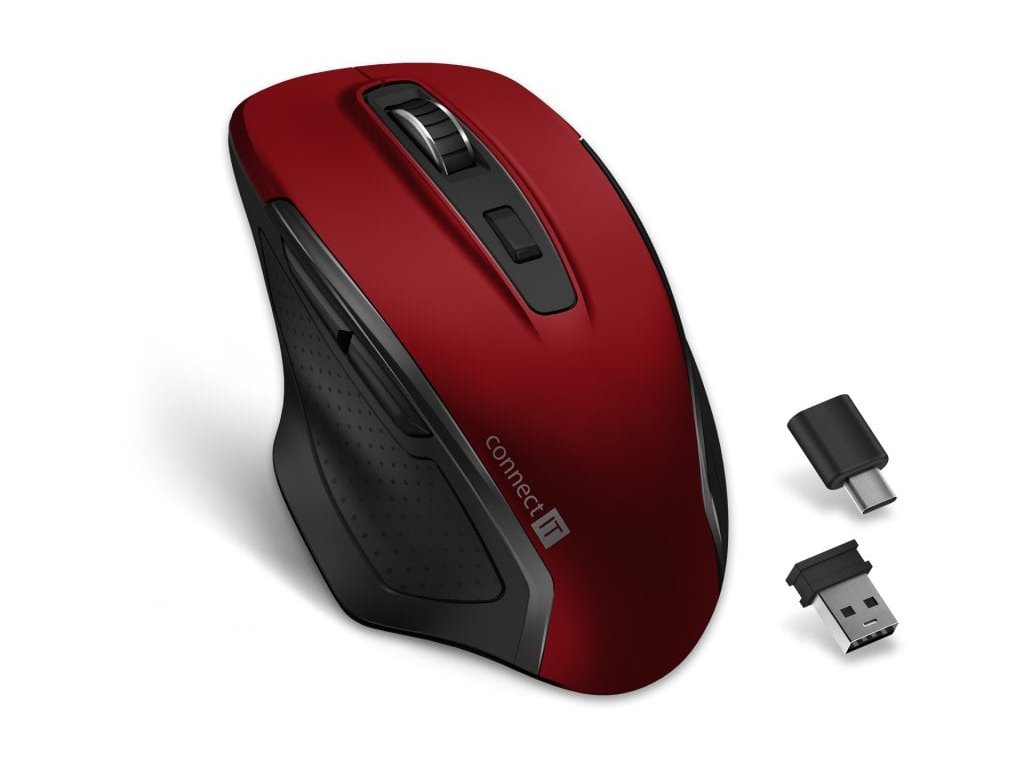 CONNECT IT Dual SmartSwitch bezdrôtová myš, USB-A + C, ČERVENÁ
