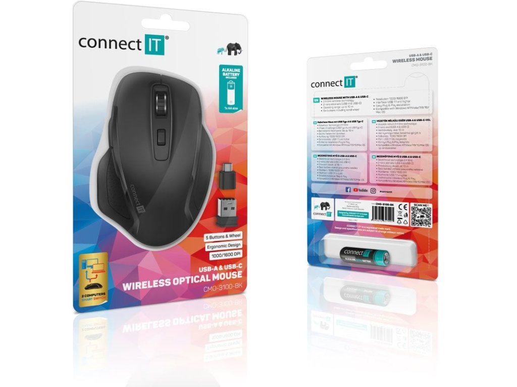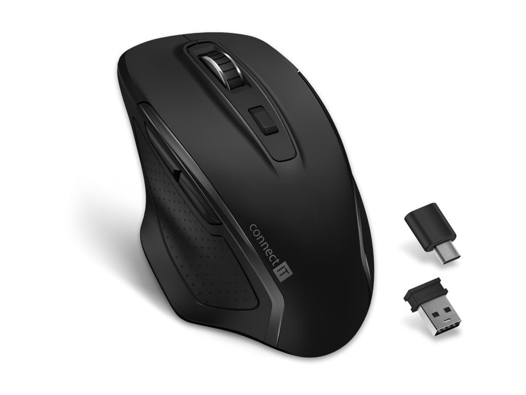 CONNECT IT Dual SmartSwitch bezdrôtová myš, USB-A + C, ČIERNA