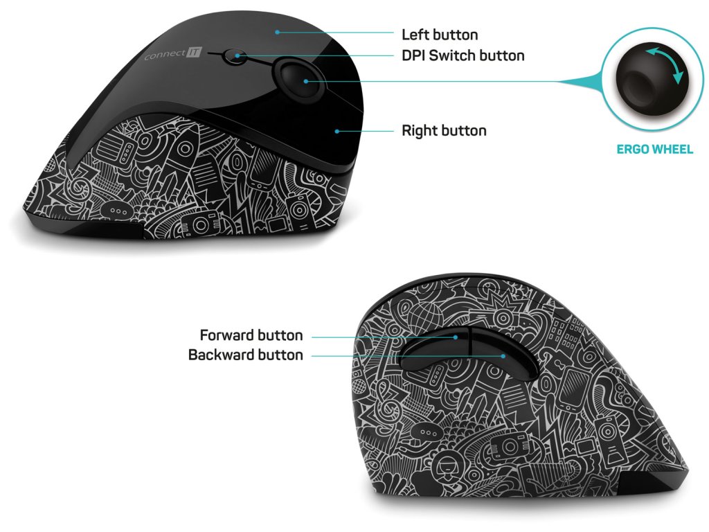 Connect IT For Health DOODLE ergonomická vertikálna myš CMO-2705-DD