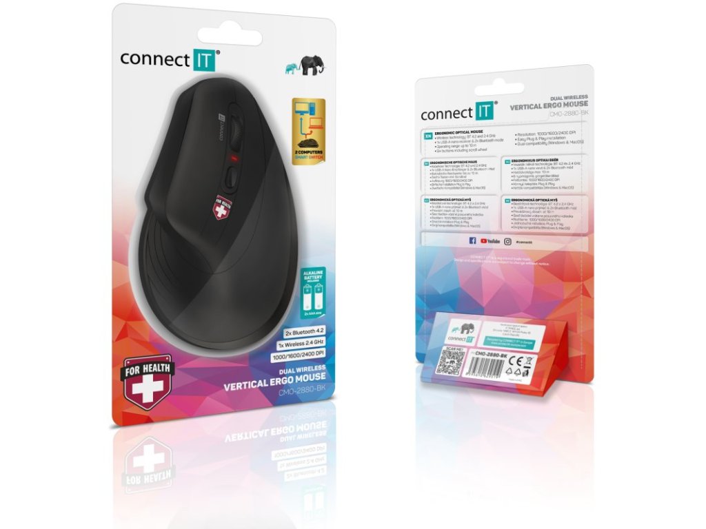 Connect IT For Health Verti TriMode, ergonomická vertikálna myš, bezdrôtová