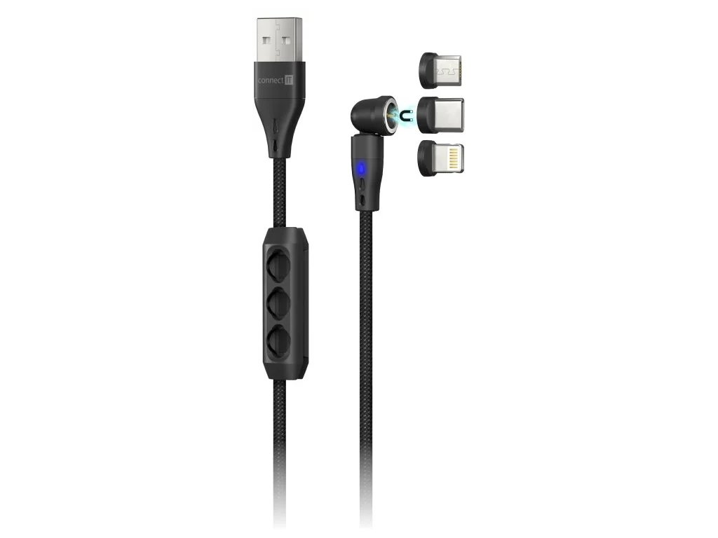 CONNECT IT Magnetický kábel PowerLink 3v1 (USB-C/Lightning/MicroUSB), 2 m