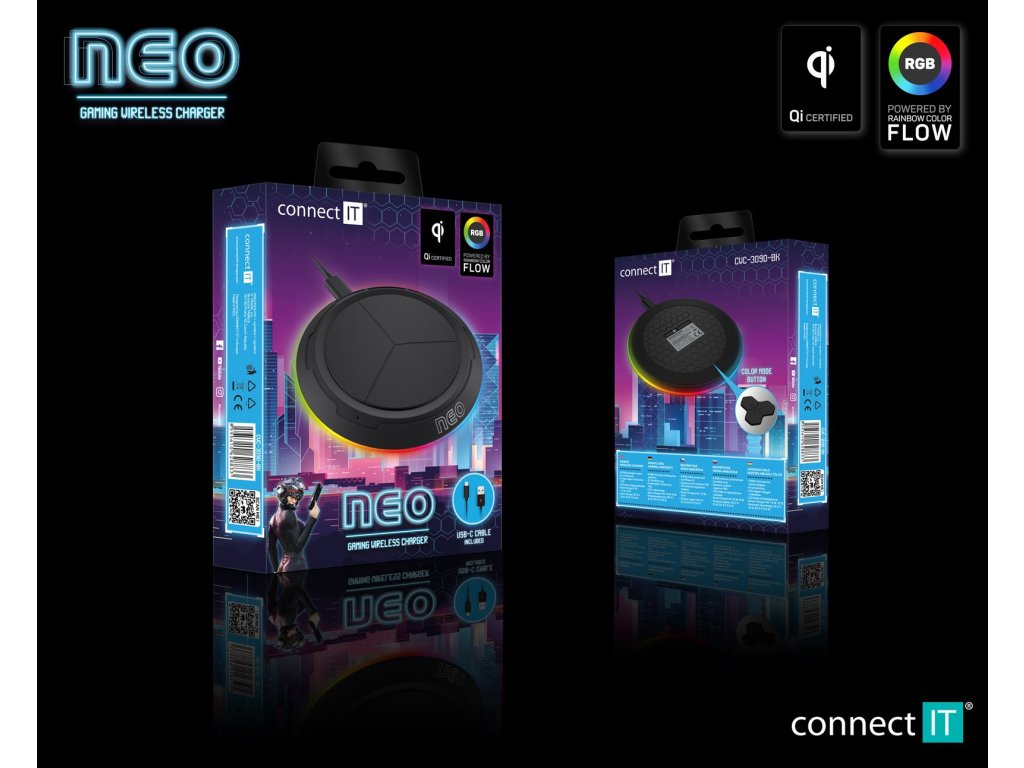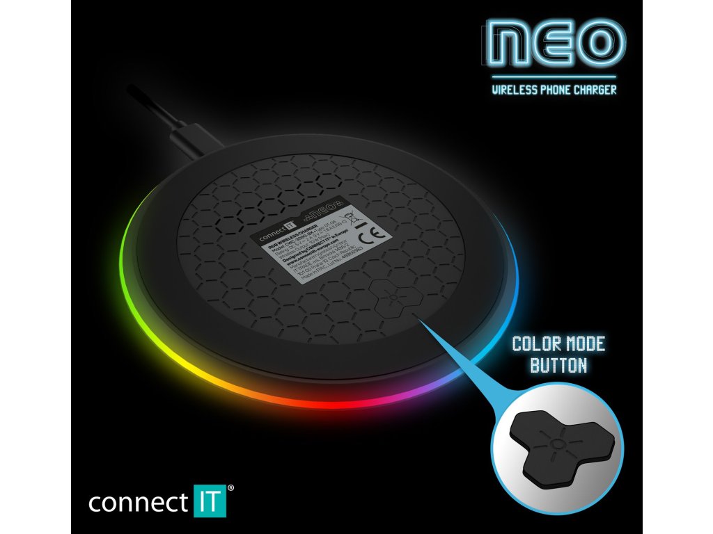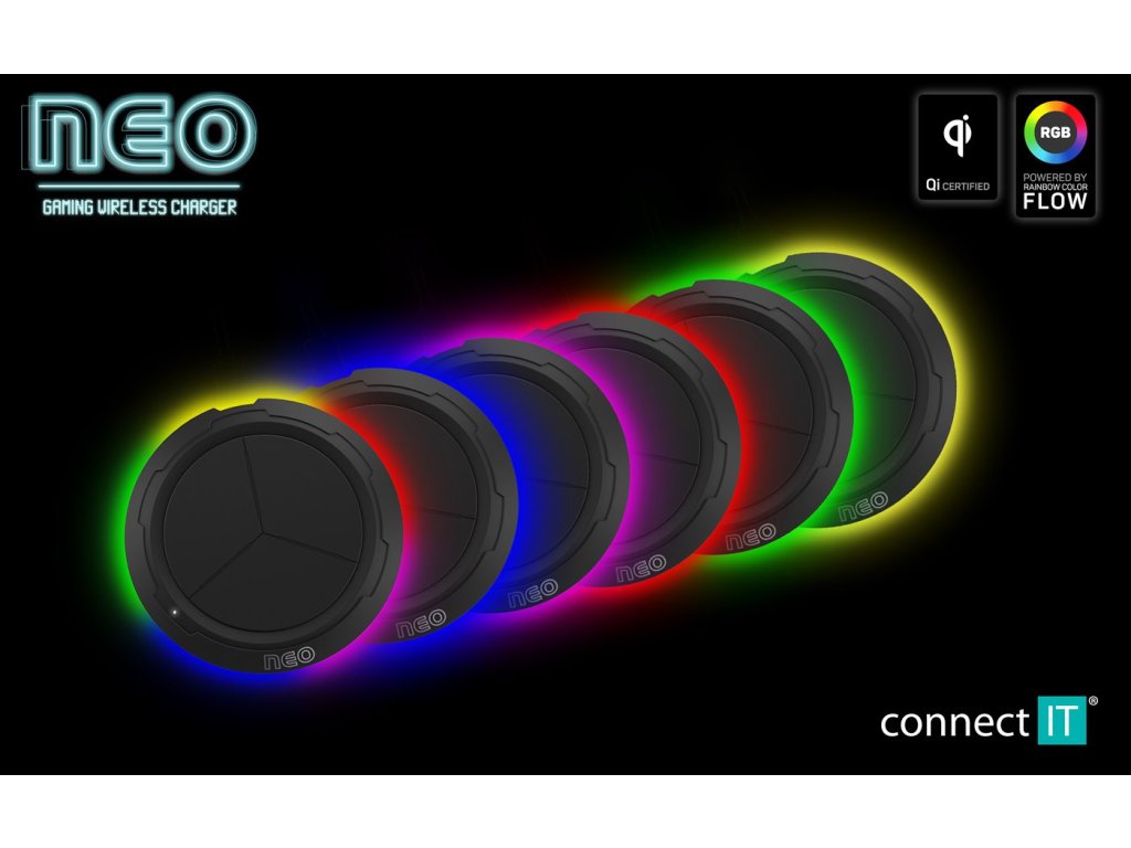 Connect IT NEO QiRGB herná bezdrôtová nabíjačka, 10 W, čierna CWC-3090-BK