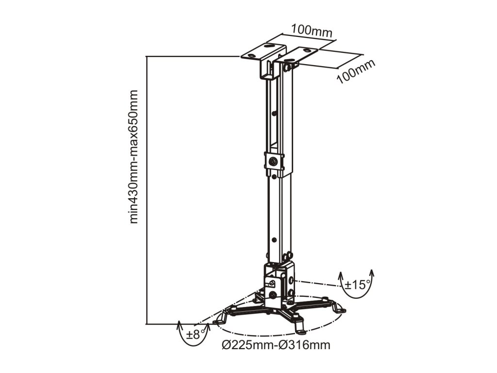 Popis produktu: Univerzálny držiak na montáž projektora na strop - farba: šedivá - naklápanie: ±15° - ľahká a rýchla montáž - vrátane skrutiek a hmoždiniek - vzdialenosť projektora od stropu nastaviteľná: 43-65 cm - nosnosť: 20 kg Stránky o produkte: www.connectit.skDodatočné parametre