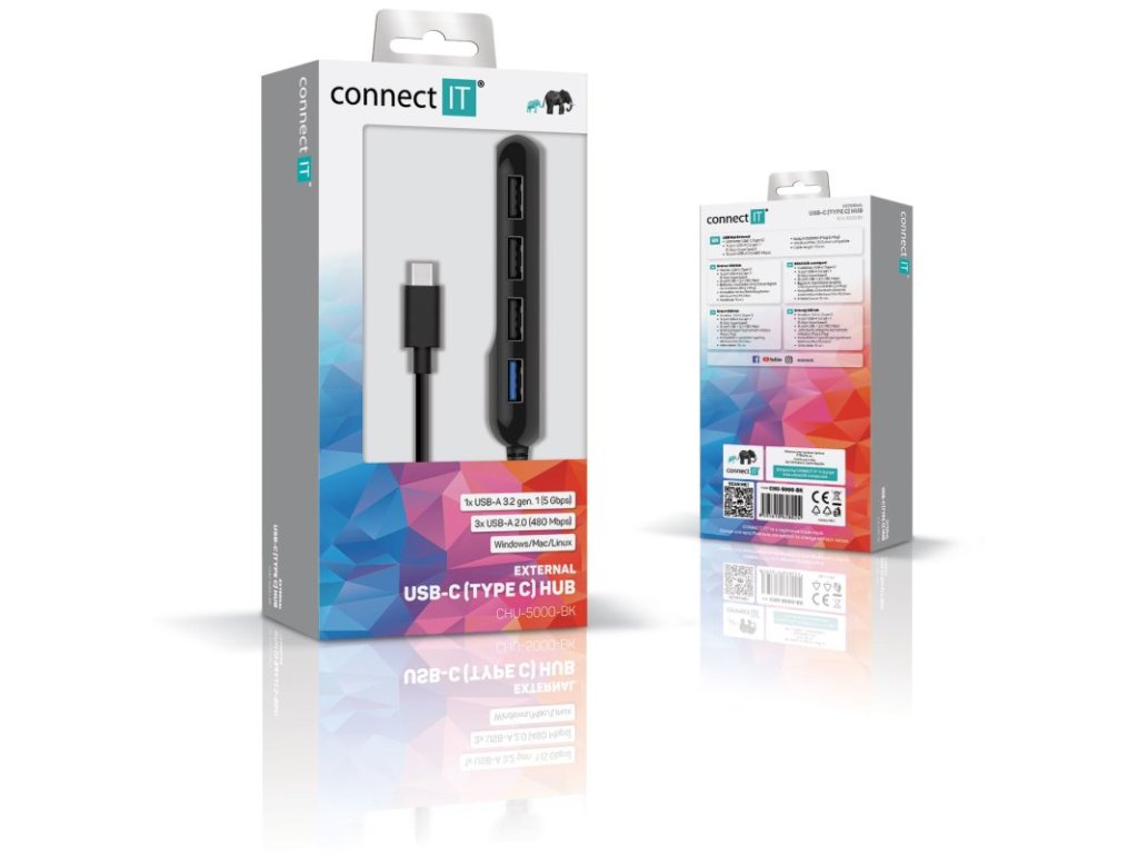 Connect IT USB-C húb USB 3.0, externý, čierny CHU-5000-BK