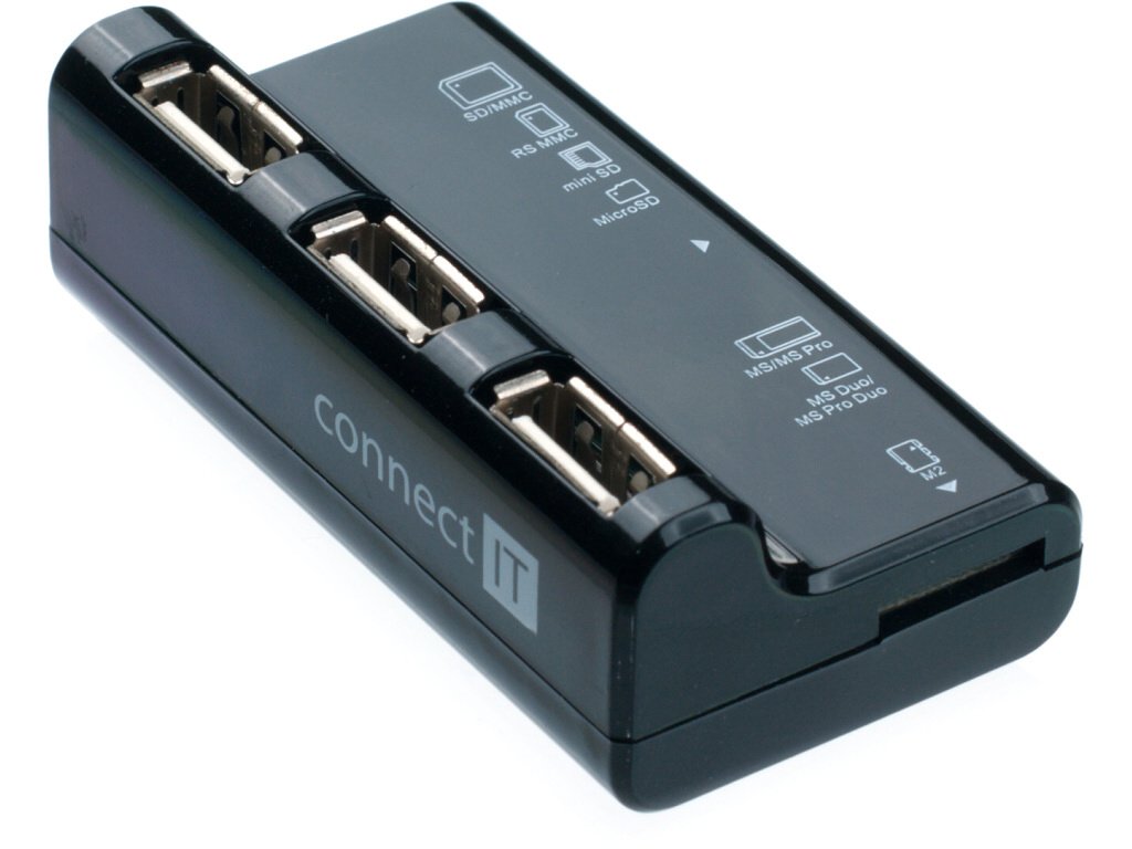 Connect IT USB COMBO hub 3 porty + čítačka kariet BOOT čierna