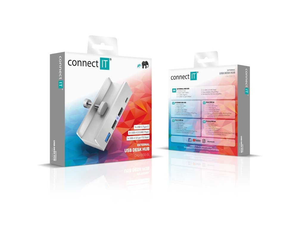 CONNECT IT USB DeskHub 4v1 pre stolný počítač, strieborná
