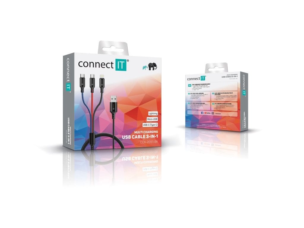 Connect IT Wirez 3v1 USB-C & microUSB & Lightning, 1,2 m