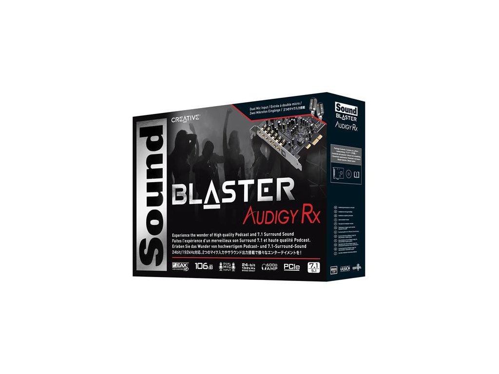 Sound Blaster Audigy Rx je pokročilá zvuková karta, ktorá predstavuje ideálny prechod zo zvuku na základnej doske k pôsobivému priestorovému zvuku ako v kine. Vďaka vylepšenej čipovej sade, ktorá umožnuje spracovávanie nášho legendárneho reverbu EAX, sa môžu užívatelia Sound Blaster Audigy Rx tešiť na zážitok z vynikajúceho multikanálového zvuku 7.1. Ďalej má