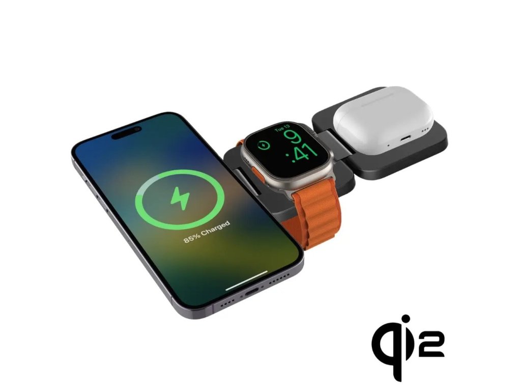 Skladacia nabíjačka Qi2 MagSafe 3v1