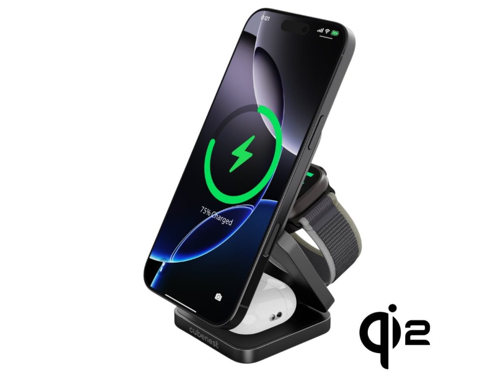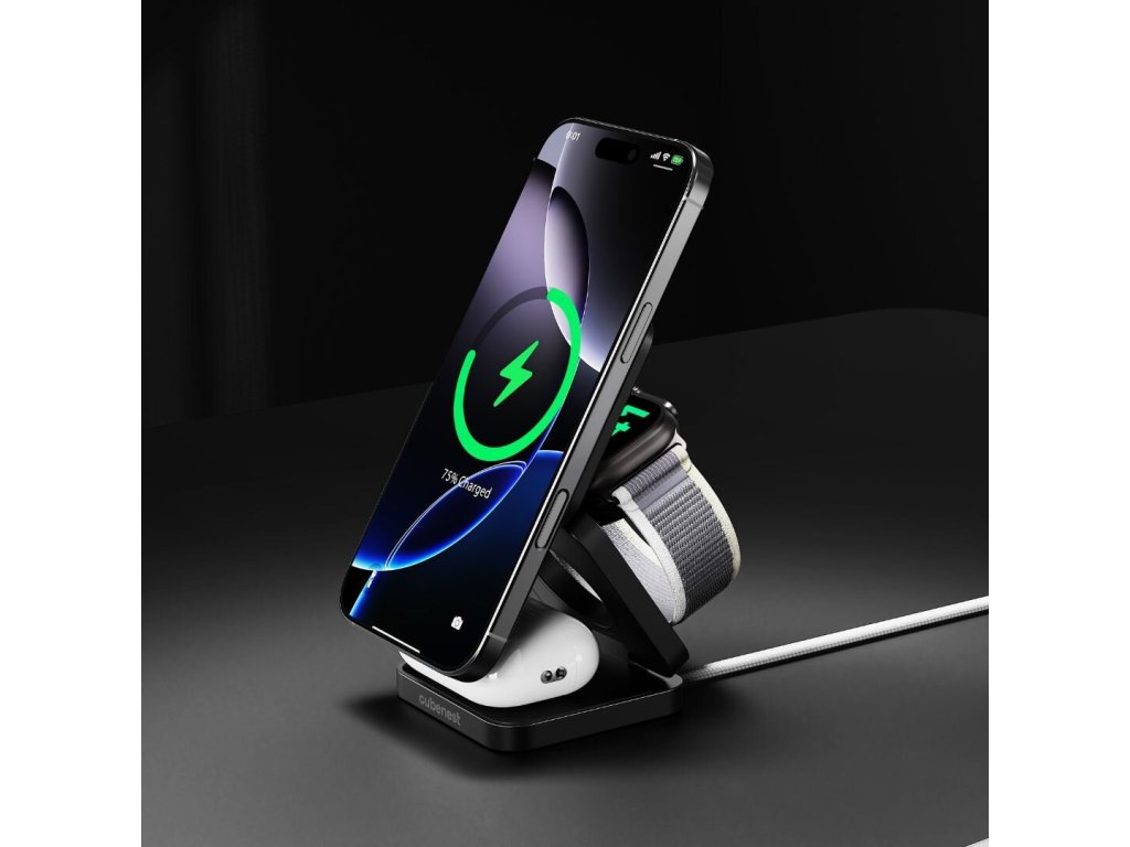 Cubenest 3v1 Qi2 skladacia bezdrôtová magnetická nabíjačka SQ312 Pro - čierna