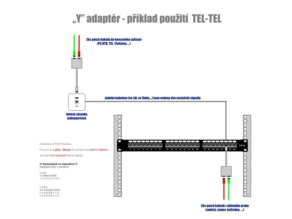 DATACOM "Y" adaptér STP CAT5E PC / TEL TEL