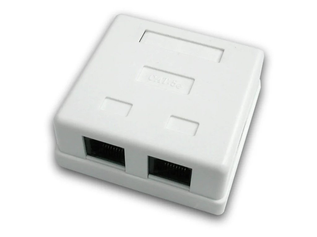 popis produktu - zásuvka je určená pre montáž "na omietku" - 2 x RJ45 spodný vývod - tienené porty - zárezové pole typu LSA - cat.5e - farba bielaDodatočné parametre