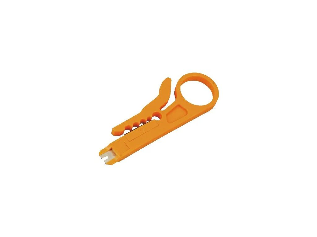 - na narazenie jednotlivých vodičov do zárezového poľa typu 110 (bez strihu prebytočného vodiča). - na ľahké odizolovanie kabeláže typu UTP, FTP a SFTP a iné mnohovodičové káble. - štyri veľkosti pre orezanie okrúhleho kábla. - orez rotáciou nástroje okolo kábla. - oko pre pohodlnú rotáciu nástroja pomocou prsta. Zárezový hrot: pre zárezové pole typu 110 Materiál: polyresin (živica) Farba: oranžová Rozmery: 92 x 35 x 6 mm Váha: 8,7 g Jednoduchá konštrukcia a jednoduchá obsluha. Výborný pomocník do vrecka.Dodatočné parametre