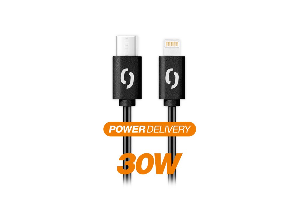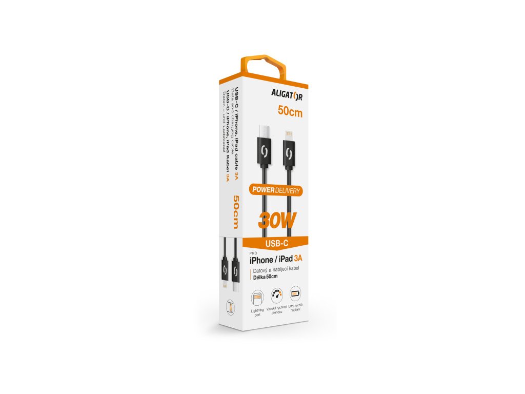 Dátový kábel ALIGATOR POWER 30W, USB-C/Lightning 3A, 0,5 m čierny