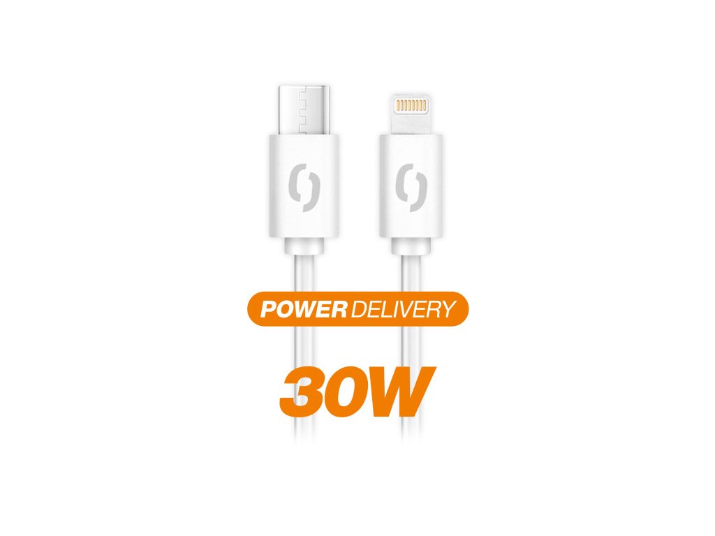 Dátový kábel ALIGATOR POWER 30W, USB-C/Lightning 3A, 2,5 m biely