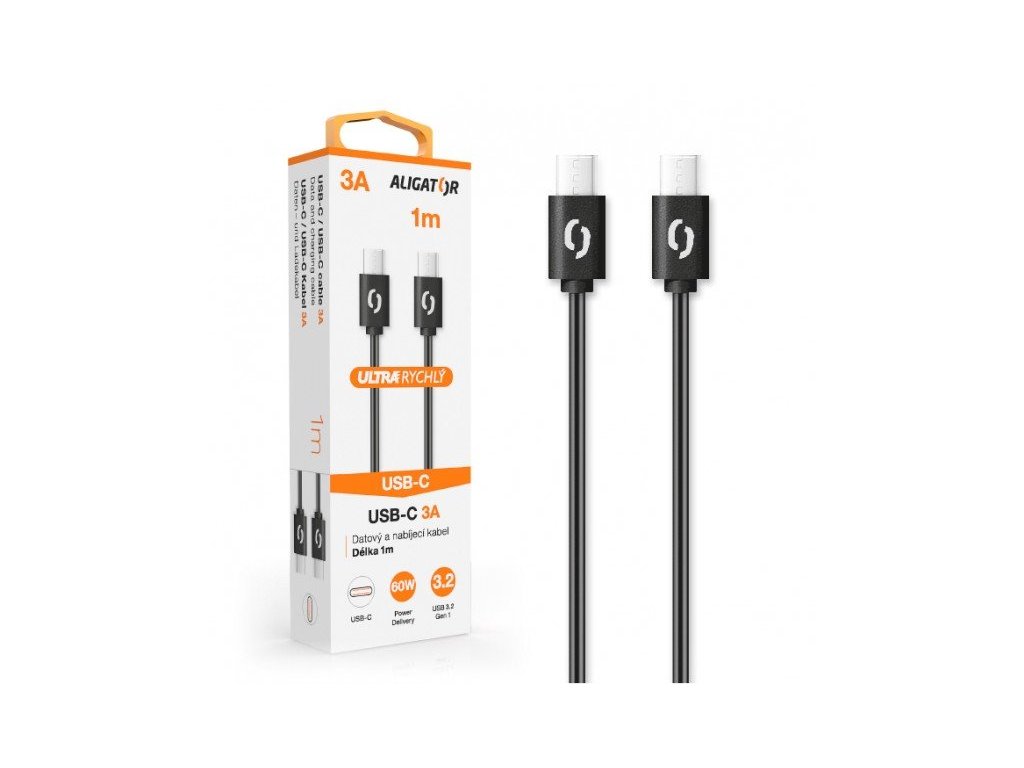 Dátový kábel ALIGATOR POWER 3A, USB-C/USB-C, 1m čierny DATKP31