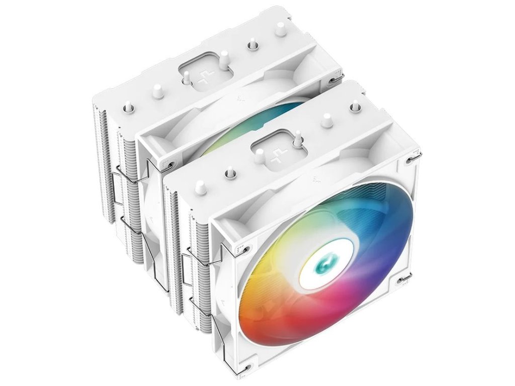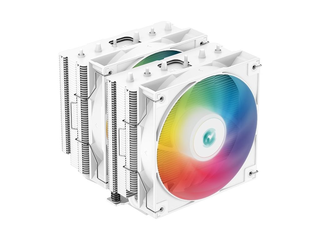 DEEPCOOL AG620 WH ARGB Chladič pre procesory Intel a AMD je vybavený šesť tepelnými trubicami a dvoma 120 mm ventilátormi s ARGB podsvietením a PWM reguláciou. Na pripojenie slúži 4pinový konektor PWM a 3pinový konektor ARGB. ZÁKLADNÉ ŠPECIFIKÁCIE Označenie chladiča: pre CPU Zásuvka: Intel: 1700, 1200, 1150, 1151, 1155, 2066, 2011-3, 2011 AMD: AM5, AM4 Rýchlosť ventilátora: 300 29,4 dBA Maximálne TDP: 260 W Rozmery: 157 × 136 × 129 mm Hmotnosť: 1300 gDodatočné parametre