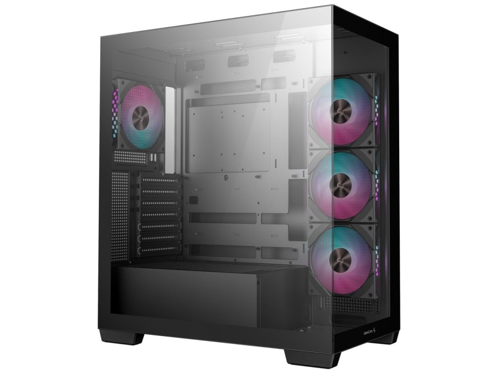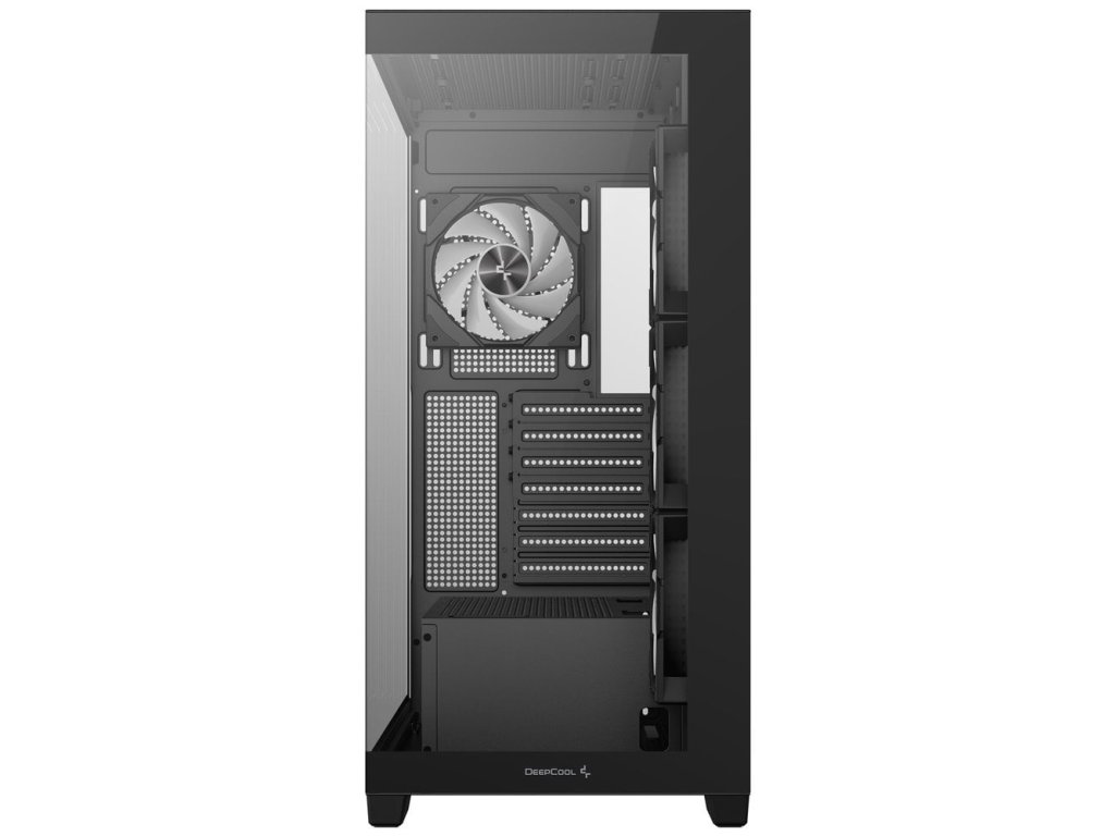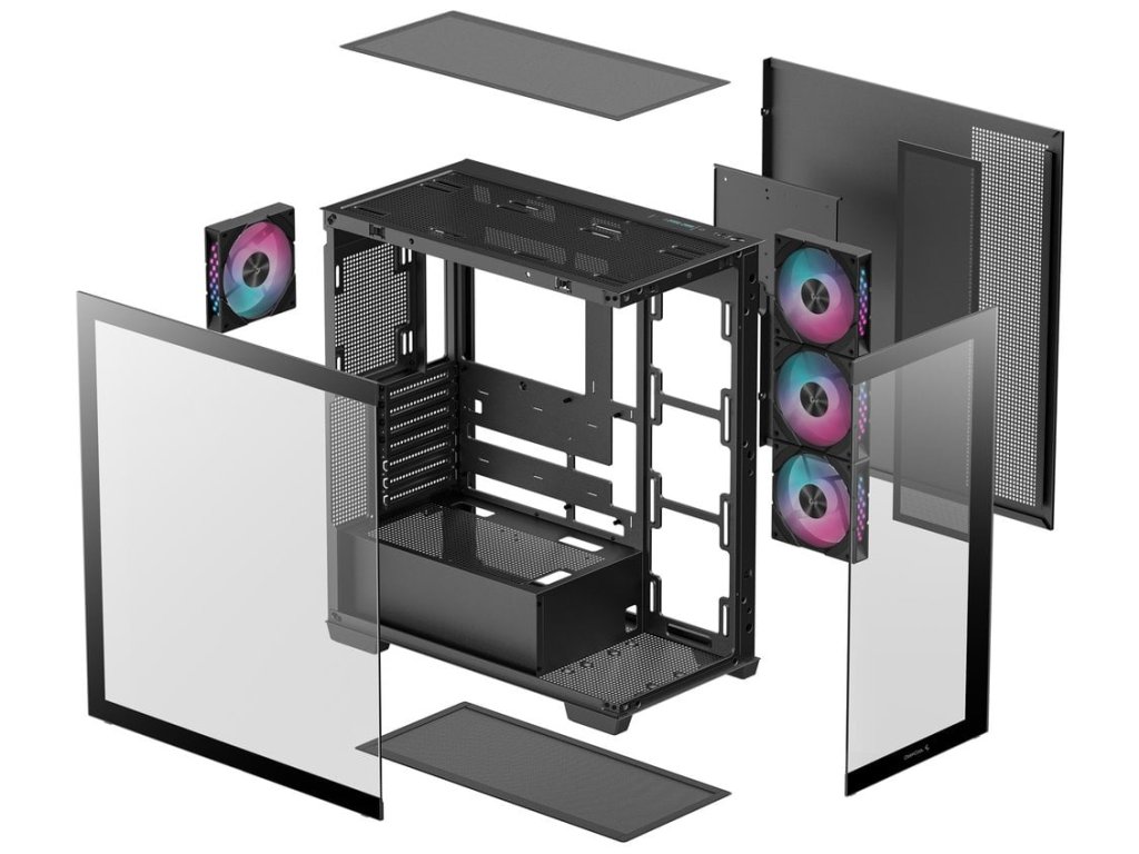 Počítačová skriňa DEEPCOOL CG580 4F v jednokomorovom dizajne, ktorý nielenže pojme výkonné komponenty, ale ich aj vystaví na obdiv. Vďaka sklenenej bočnici a prednému panelu poskytuje panoramatický a nerušený pohľad na vnútorné usporiadanie, a tým aj štýlový vzhľad celej skrine. Konštrukcia ponúka praktický priestor pre základnú dosku, čo prispieva k čistému a nepreplnenému usporiadaniu.