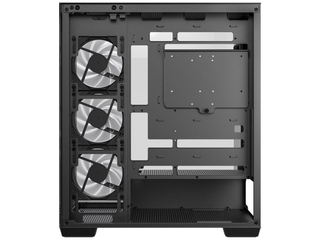 Jednokomorová skriňa formátu Middle Tower so sklenenými bočnicami a predným panelom, ktorý ponúka výhľad v uhle 270°. K dispozícii sú dve 2,5" pozície pre SSD a dve 3,5" pozície pre HDD. Na hornom paneli sa nachádzajú dva porty USB 3.0, port USB-C a kombinovaný port pre slúchadlá a mikrofón. Skriňa je vybavená štyrmi 120 mm ventilátormi PWM s podsvietením ARGB. Dômyselná konštrukcia umožňuje pohodlné umiestnenie až 360 mm dlhého výmenníka tepla vodného chladenia na hornej alebo bočnej strane. V skrini je dostatok miesta pre chladič procesora s výškou až 176 mm a grafickú kartu s dĺžkou 410 mm (max. 262 mm, ak je na bočnej strane nainštalovaný 360 mm výmenník tepla vodného chladenia). Skriňa sa dodáva bez napájacieho zdroja. Súčasťou dodávky je aj sada magnetických prachových filtrov.