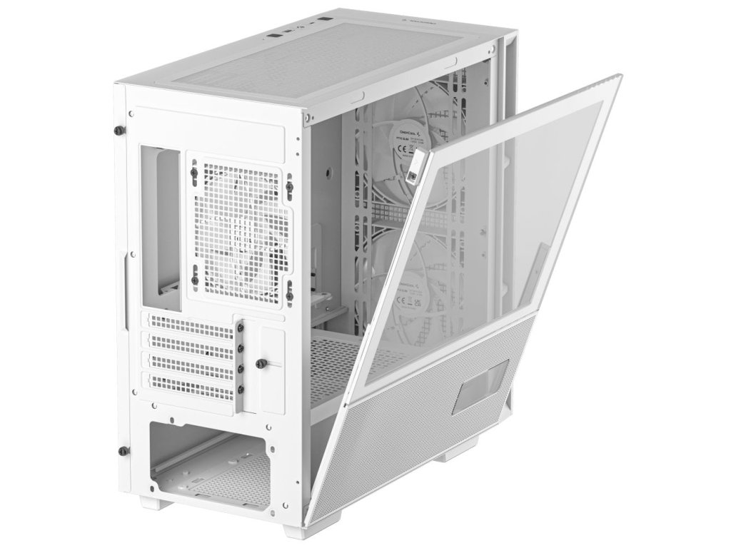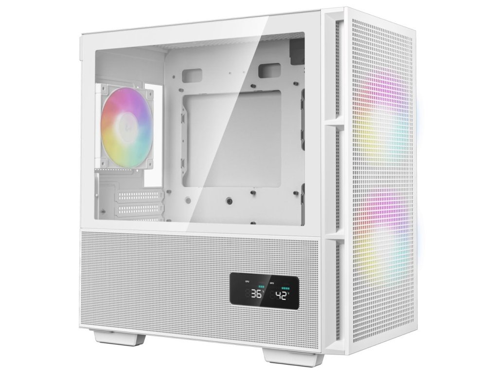 Štýlová počítačová skriňa DEEPCOOL CH360 DIGITAL podporuje efektívne prúdenie vzduchu. Je vybavená predným perforovaným panelom pre vysoký prietok vzduchu na bočný panel z hybridného tvrdeného skla. Tieto konštrukčné prvky spolu s osadenými ventilátormi umožňujú priechod vzduchu zo všetkých strán a prevádzku moderných a energeticky náročných komponentov.