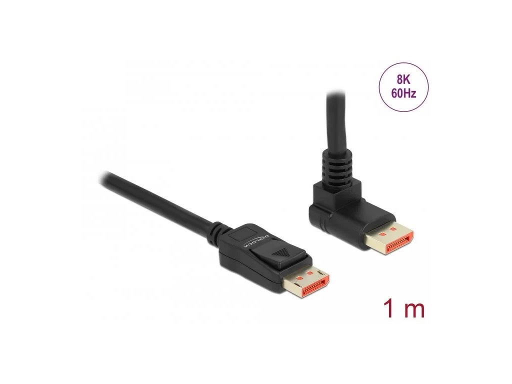 Delock DisplayPort kábel samec rovný na samec 90° obdĺžnikový až 8K 60 Hz 1 m